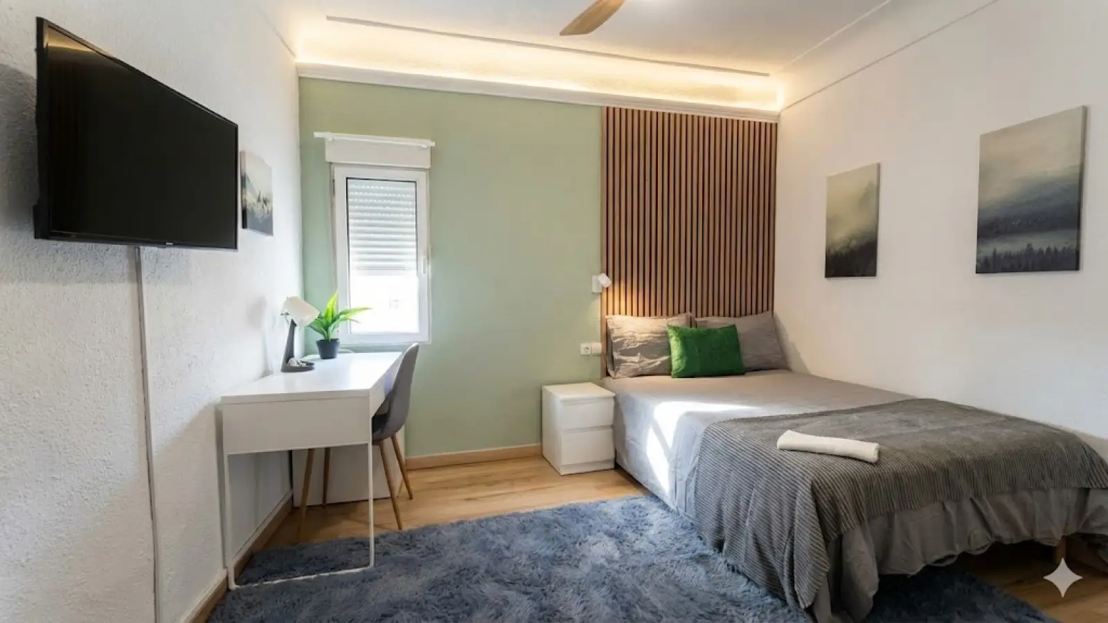 This room is perfect for solo travelers who want to stay in a cozy and quiet space. It is located in Avenida Aguilera 18, a vibrant and convenient area with many amenities nearby. The room has a double bed, a wardrobe, a desk and a chair. You will also have access to a shared bathroom, kitchen and living room with other guests. The room does not include bed linens, towels, toiletries or complimentary refreshments, so please bring your own or buy them locally. The room also has a smart TV and a mini fridge for your entertainment and convenience. The room has a window to the atrium, where you can see some plants and hear some birds. The room is interior and has no views to the street, but it is comfortable and peaceful. The room is also very close to the Alicante Renfe station, which is only a few minutes away by walking or by bus. This makes it easy to travel to other destinations by train. Book your stay now and discover the charm of Alicante!
