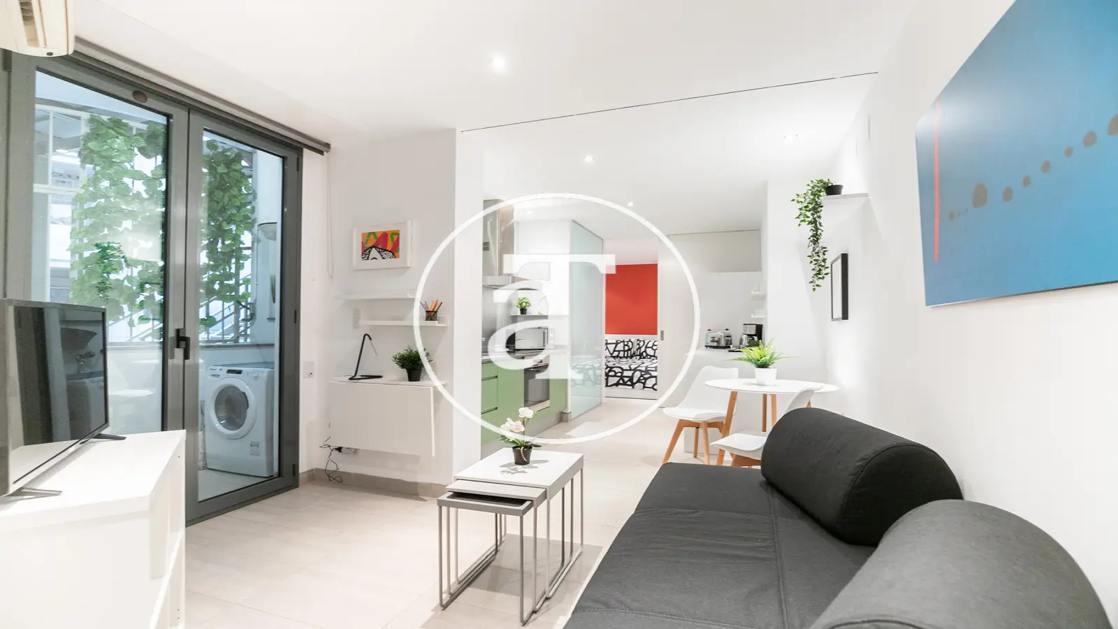 It is a practical, modern, and bright temporary rental apartment of about 44 mt2, located in one of the most central districts of Barcelona: the Eixample Dreta.