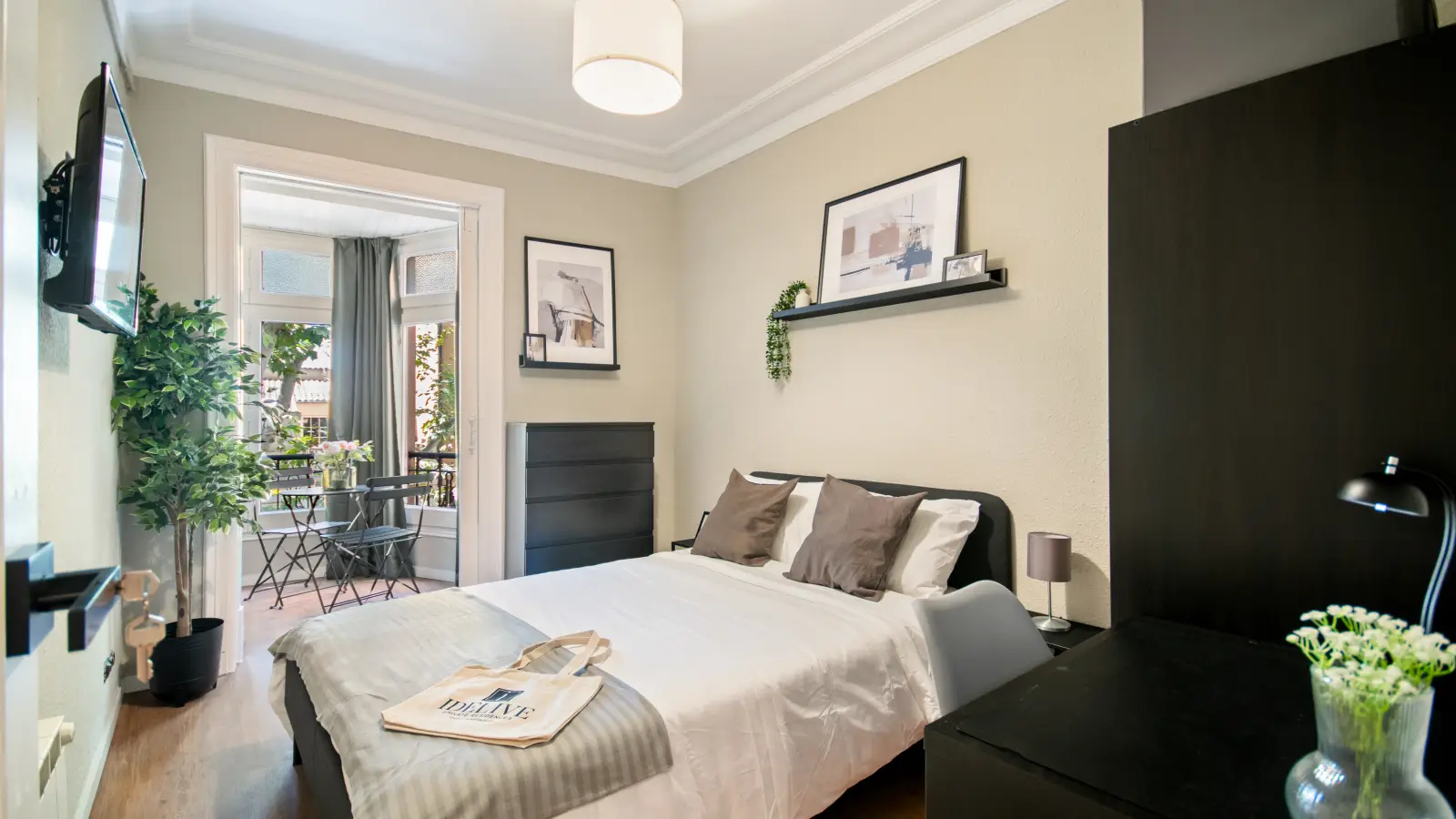 This furnished shared apartment in the vibrant el Poblenou offers a comfortable room in a 6-bedroom flat. The building has an elevator, and the apartment comes with an equipped kitchen, common washing machine, and natural gas water heating and heating system. Please note, pets and smoking are not allowed.