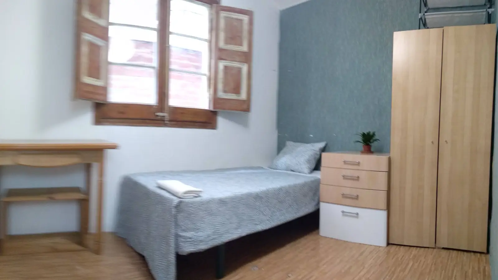 Looking for a cozy room in Barcelona? This shared 2-bedroom apartment in Sant Antoni offers a furnished living space, equipped kitchen, oven, and common washer. Pets are allowed, but please note smoking is not permitted indoors. While the internet is unavailable, electric units provide heating for comfort.