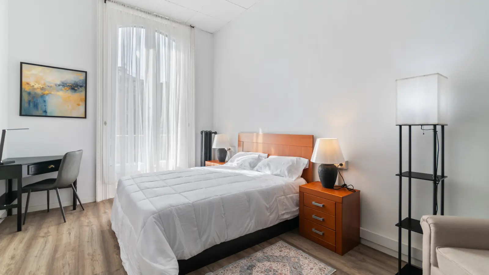 Welcome to this well-furnished double room in an 8-bedroom shared apartment located in la Dreta de l'Eixample, Barcelona. The room is equipped with a double bed and a desk, making it perfect for focused study or work sessions. It also features a built-in wardrobe and a window offering charming street views. Please note that couples are not allowed.