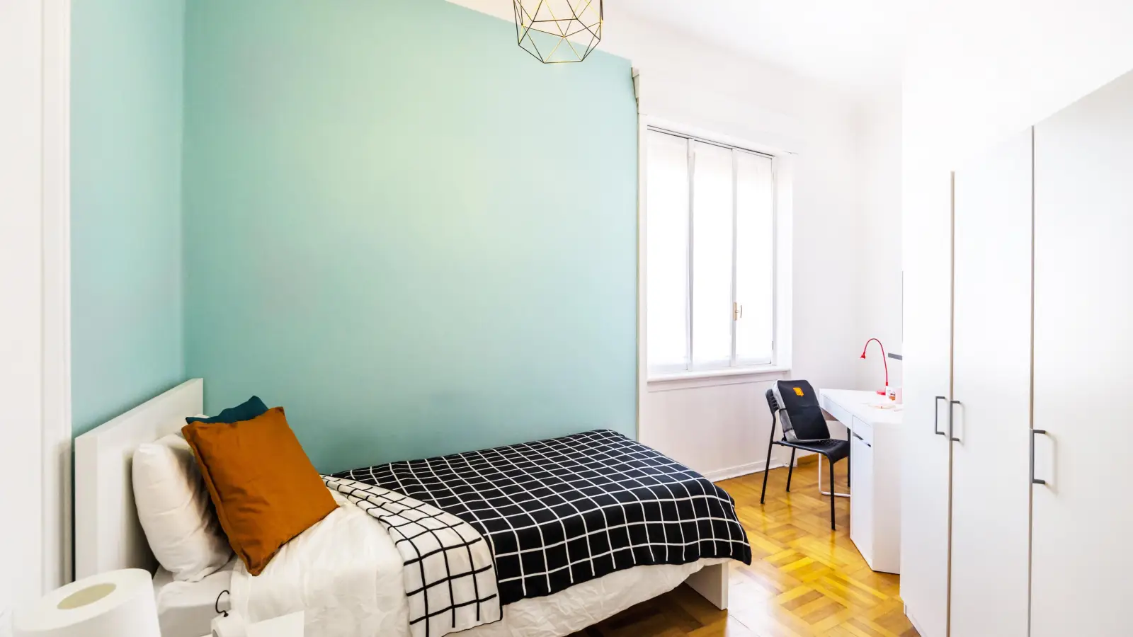 Zona Centro, posizione strategica e ambita, si affitta una bellissima stanza singola Stanza Semplice ristrutturata appositamente per offrire comfort e comodità ai nostri studenti. La stanza è dotata di letto singolo, armadio 3 ante, scrivania con portaoggetti, comodino, tendaggi, specchio, scarpiera, libreria. I colori delle pareti favoriscono il buon umore e aiutano nello studio.