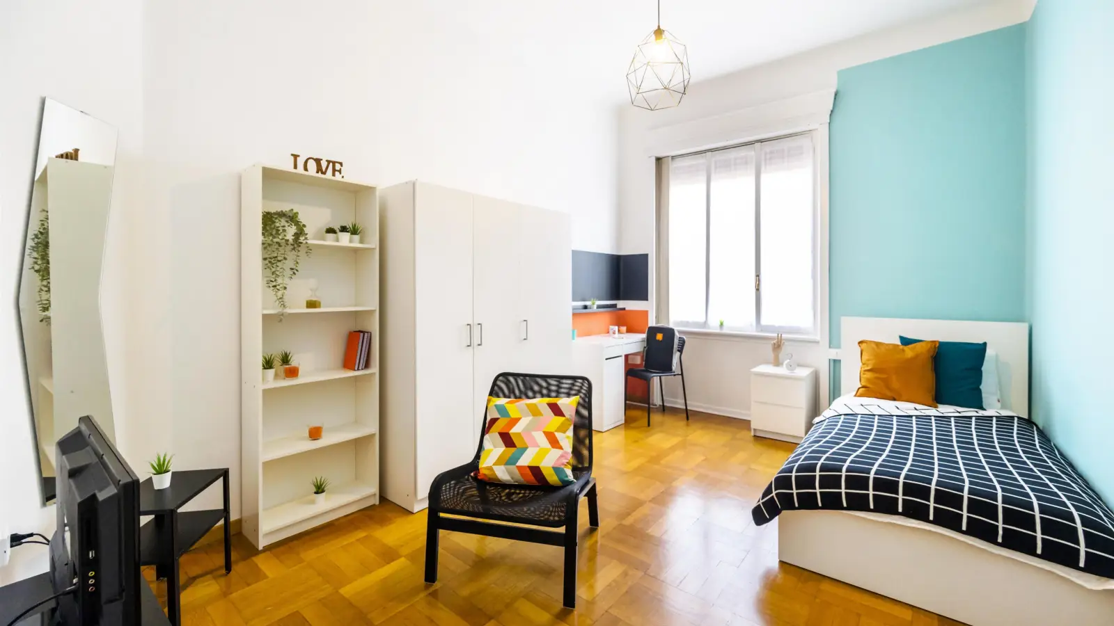 Zona Centro, posizione strategica e ambita, si affitta una bellissima suite Stanza Semplice ristrutturata appositamente per offrire comfort e comodità ai nostri studenti. La stanza è dotata di, tv led, letto singolo, armadio 3 ante, scrivania con portaoggetti, comodino, tendaggi, specchio, scarpiera, libreria. I colori delle pareti favoriscono il buon umore e aiutano nello studio.