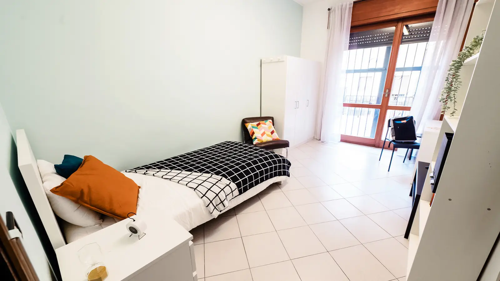 Zona Centro, posizione strategica e ambita, si affitta una bellissima stanza SUITE singola ristrutturata appositamente per offrire comfort e comodità ai nostri studenti. La stanza è dotata di mobile TV, tv LED, poltrona, tavolino, letto singolo, armadio 3 ante, scrivania con portaoggetti, comodino, tendaggi, specchio e libreria. I colori delle pareti favoriscono il buon umore e aiutano nello studio.