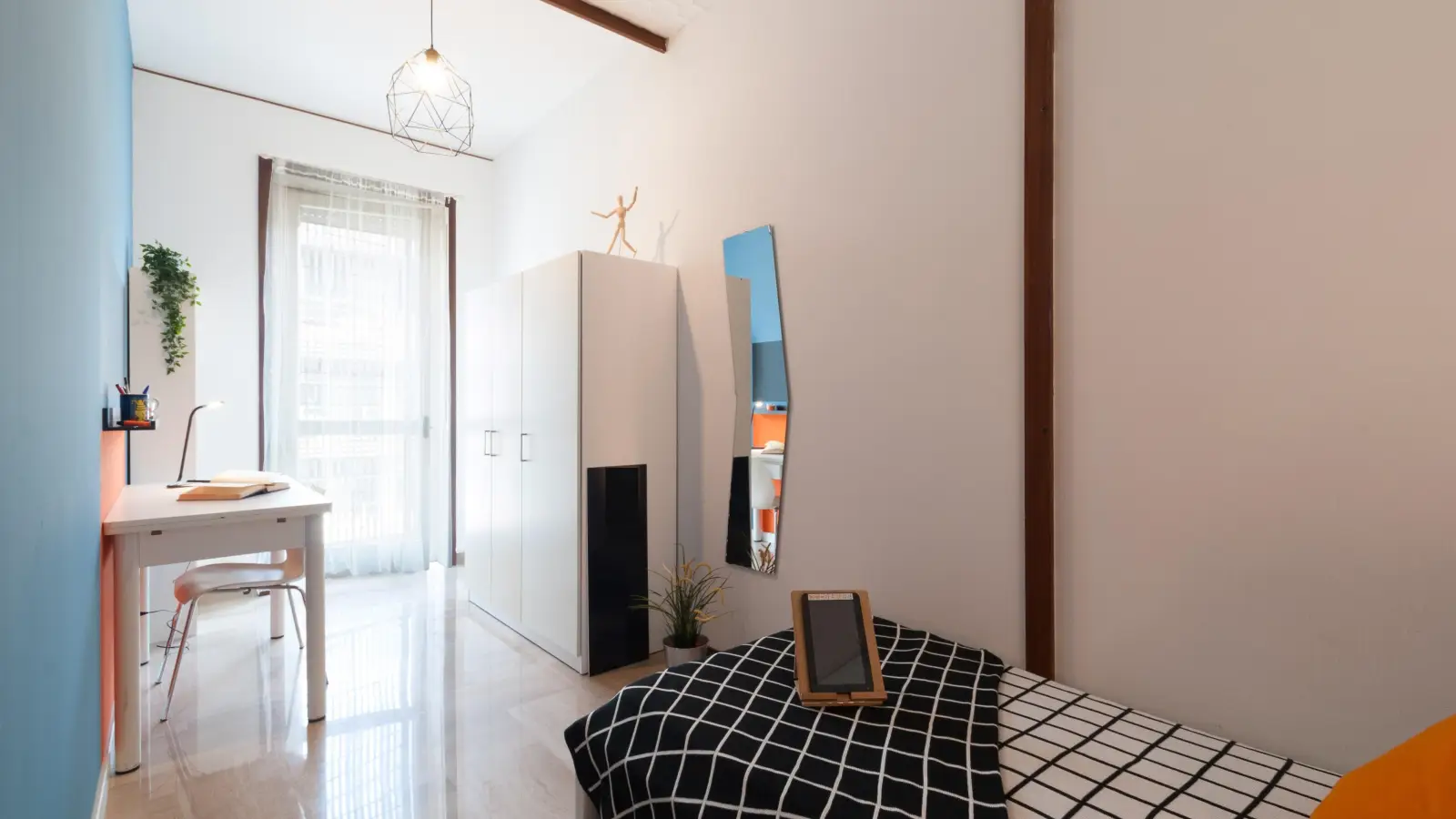 Zona Santa Lucia, posizione strategica e ambita, si affitta una bellissima stanza singola Stanza Semplice ristrutturata appositamente per offrire comfort e comodità ai nostri studenti. La stanza è dotata di letto singolo, armadio 3 ante, scrivania con portaoggetti, comodino, tendaggi, specchio, libreria. I colori delle pareti favoriscono il buon umore e aiutano nello studio.
