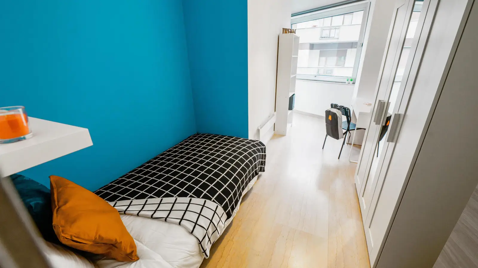 Zona Centro, bellissima stanza singola, ristrutturata appositamente per offrire comfort e comodità ai nostri studenti. La stanza è dotata di letto singolo, armadio, scrivania, specchio, 2 scarpiere, libreria. I colori delle pareti favoriscono il buon umore e aiutano nello studio.