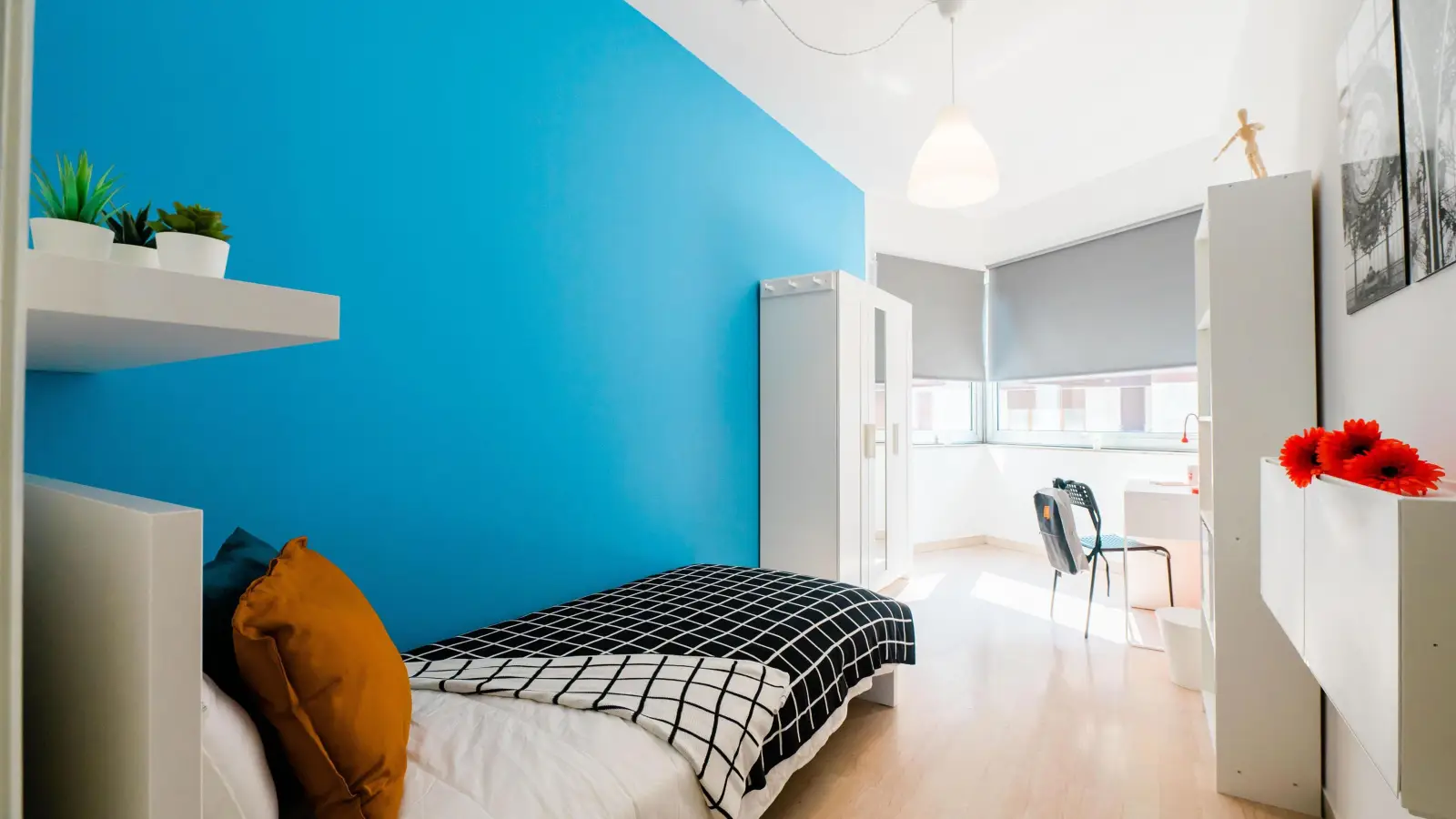 Zona Centro, bellissima stanza singola, ristrutturata appositamente per offrire comfort e comodità ai nostri studenti. La stanza è dotata di letto singolo, armadio, scrivania, specchio, 2 scarpiere, libreria. I colori delle pareti favoriscono il buon umore e aiutano nello studio.