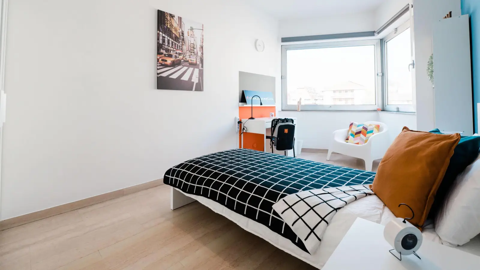 Zona Centro, bellissima stanza singola, ristrutturata appositamente per offrire comfort e comodità ai nostri studenti. La stanza è dotata di letto singolo, 2 comodini, armadio, scrivania, specchio, 2 scarpiere, libreria, poltroncina.. I colori delle pareti favoriscono il buon umore e aiutano nello studio.