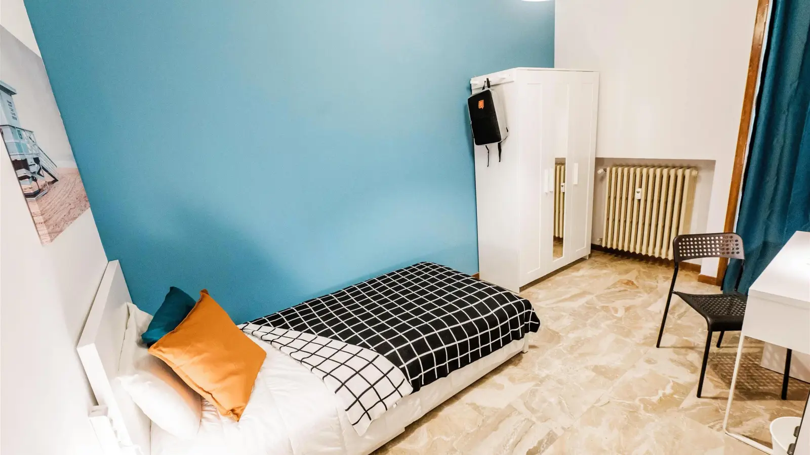 Zona Centro, posizione strategica ambita soprattutto dagli studenti fuori sede, si affitta una bellissima stanza standard ristrutturata appositamente per offrire comfort e comodità ai nostri studenti. La stanza è dotata di letto singolo, armadio 3 ante, scrivania con portaoggetti, comodino, tendaggi, specchio, scarpiera e libreria. I colori delle pareti favoriscono il buon umore e aiutano nello studio.