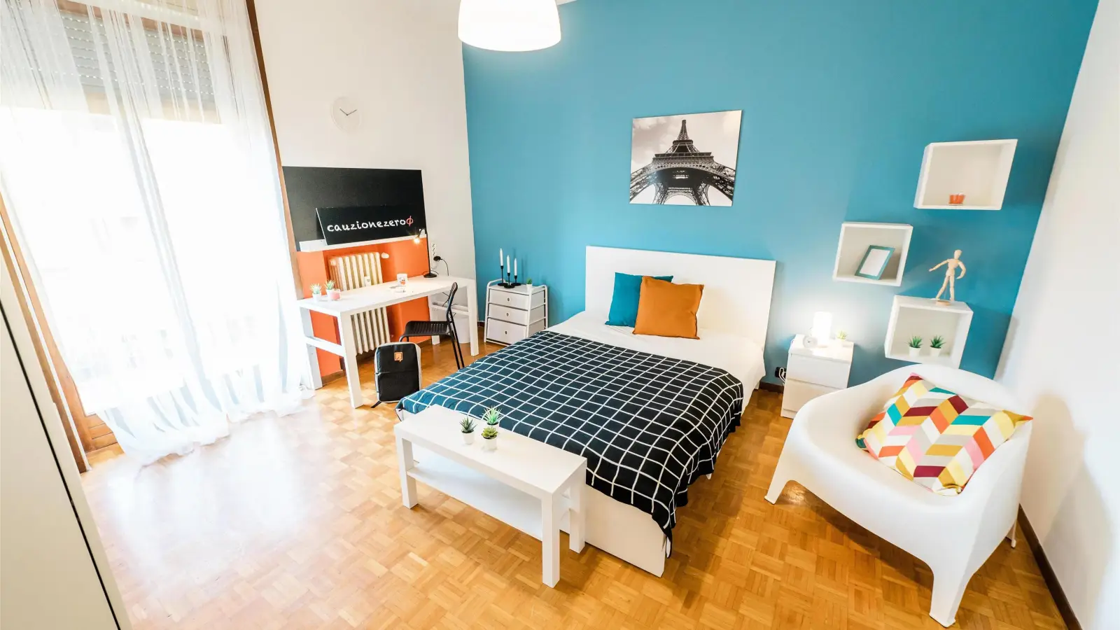 Zona Centro, posizione strategica ambita soprattutto dagli studenti fuori sede, si affitta una bellissima stanza suite ristrutturata appositamente per offrire comfort e comodità ai nostri studenti. La stanza è dotata di letto ad un piazza e mezza, doppia armadiatura 3 ante, scrivania con portaoggetti, comodino, poltrona, tavolino, tendaggi, specchio, scarpiera e libreria. I colori delle pareti favoriscono il buon umore e aiutano nello studio.