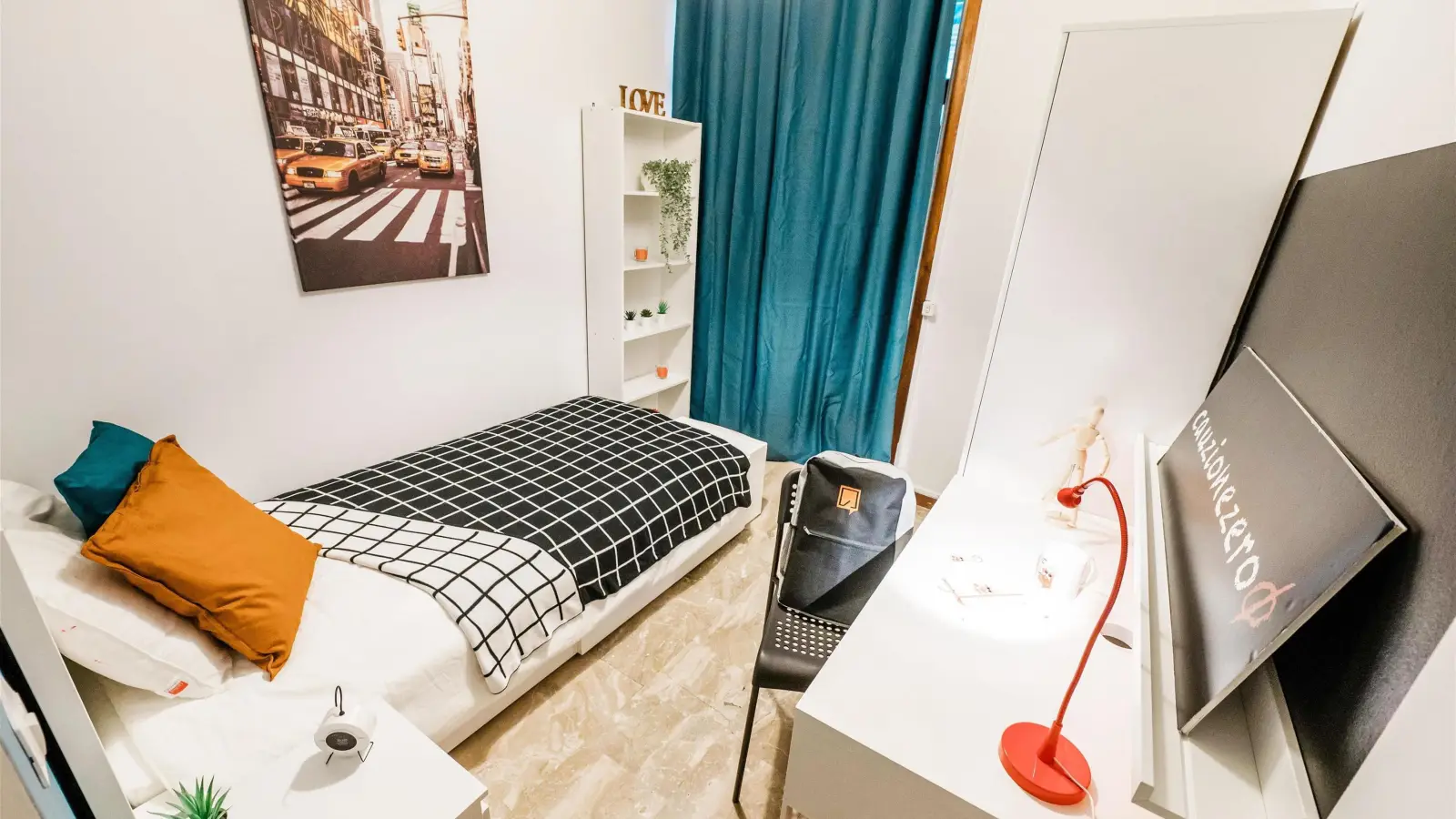 Zona Centro, posizione strategica ambita soprattutto dagli studenti fuori sede, si affitta una bellissima stanza standard ristrutturata appositamente per offrire comfort e comodità ai nostri studenti. La stanza è dotata di letto singolo, armadio 3 ante, scrivania con portaoggetti, comodino, tendaggi, specchio, scarpiera e libreria. I colori delle pareti favoriscono il buon umore e aiutano nello studio.