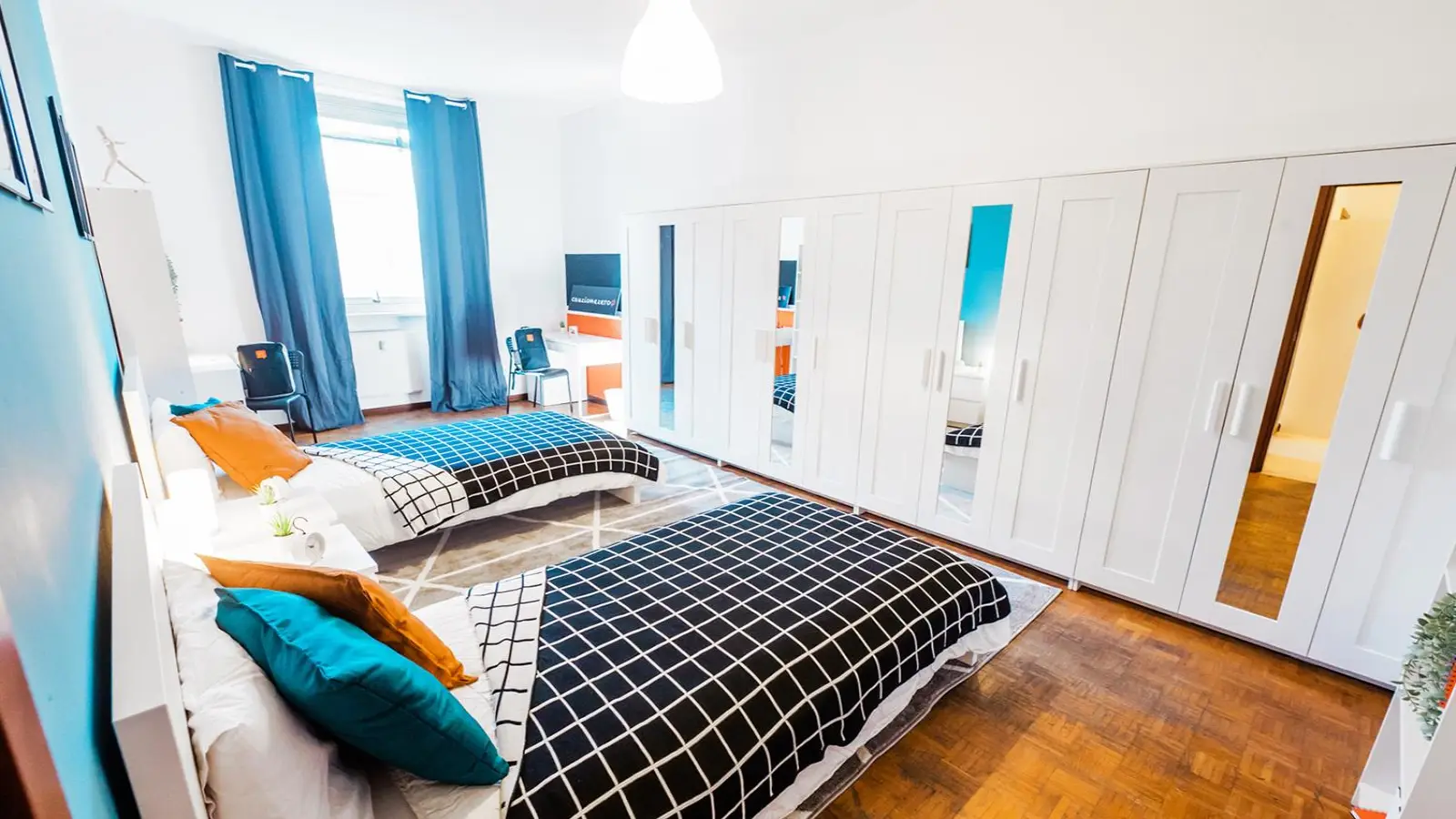 Zona Centro, posizione strategica ambita soprattutto dagli studenti fuori sede, si affitta una bellissima stanza standard ristrutturata appositamente per offrire comfort e comodità ai nostri studenti. La stanza è dotata di 2 letti singoli, 4 armadi 3 ante, 2 scrivanie con portaoggetti, 2 comodini, tendaggi, specchio, scarpiere e 2 librerie. I colori delle pareti favoriscono il buon umore e aiutano nello studio.