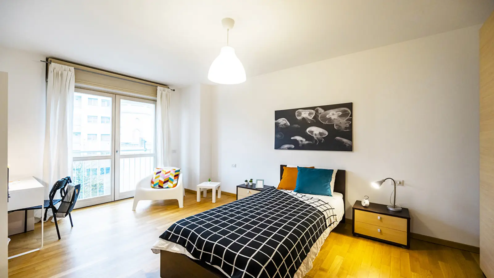 In zona Centrale, posizione strategica e ambita grazie alla vicinanza all'Università di Via dei Caniana, al supermercato Esselunga, e alla stazione, si affitta una bellissima stanza singola. La stanza è dotata di letto singolo, armadio, scrivania, comodino, scarpiera, libreria. I colori delle pareti favoriscono il buon umore e aiutano nello studio.