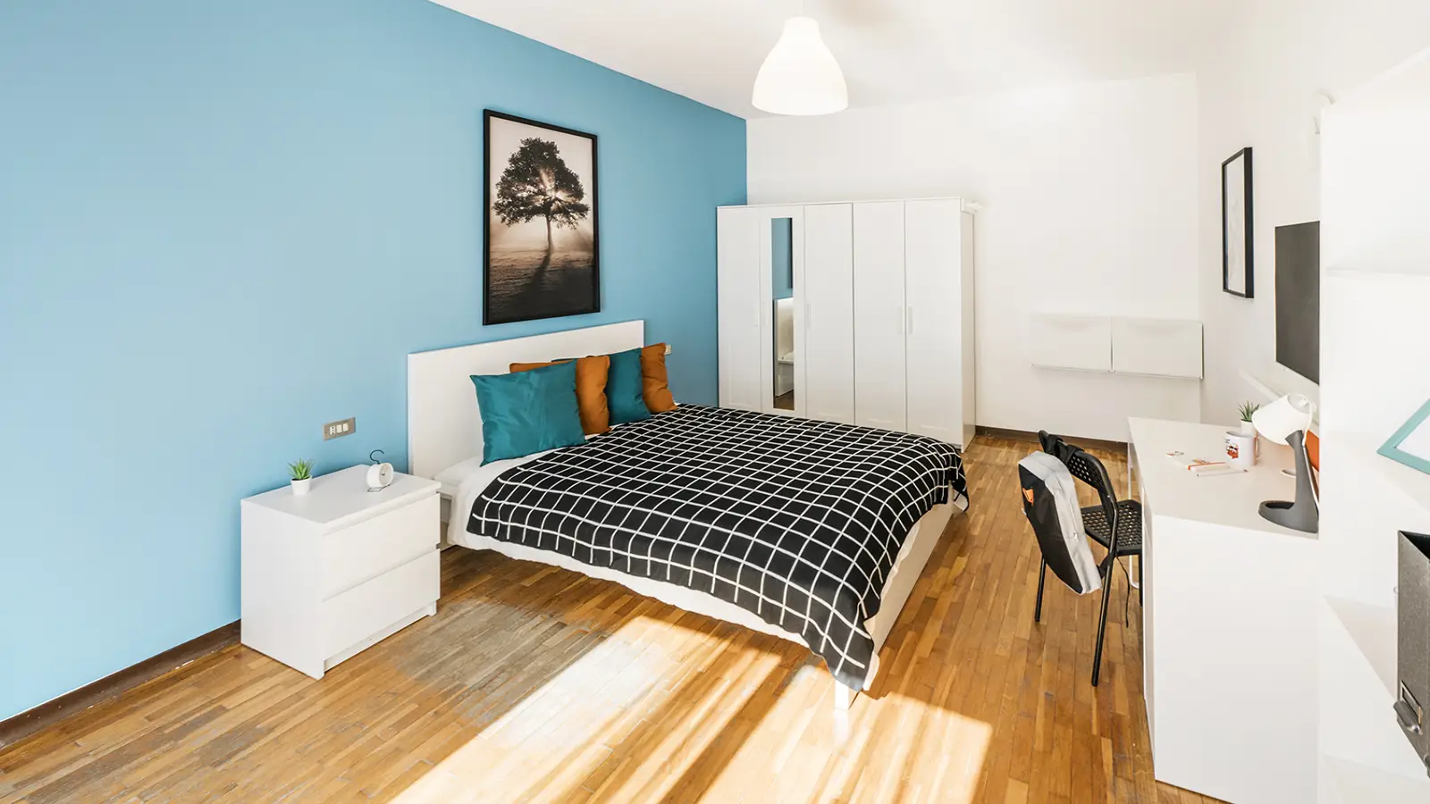 Zona Centro, posizione strategica ambita soprattutto dagli studenti fuori sede, si affitta una bellissima stanza ristrutturata appositamente per offrire comfort e comodità ai nostri studenti. La stanza è dotata di 1 letto una piazza e mezza, 1 comodino, 2 armadi 3 ante, scrivania con seduta, tendaggi, specchio, scarpiere, libreria, poltroncina con tavolino ed accesso esclusivo a terrazzino. I colori delle pareti favoriscono il buon umore e aiutano nello studio.