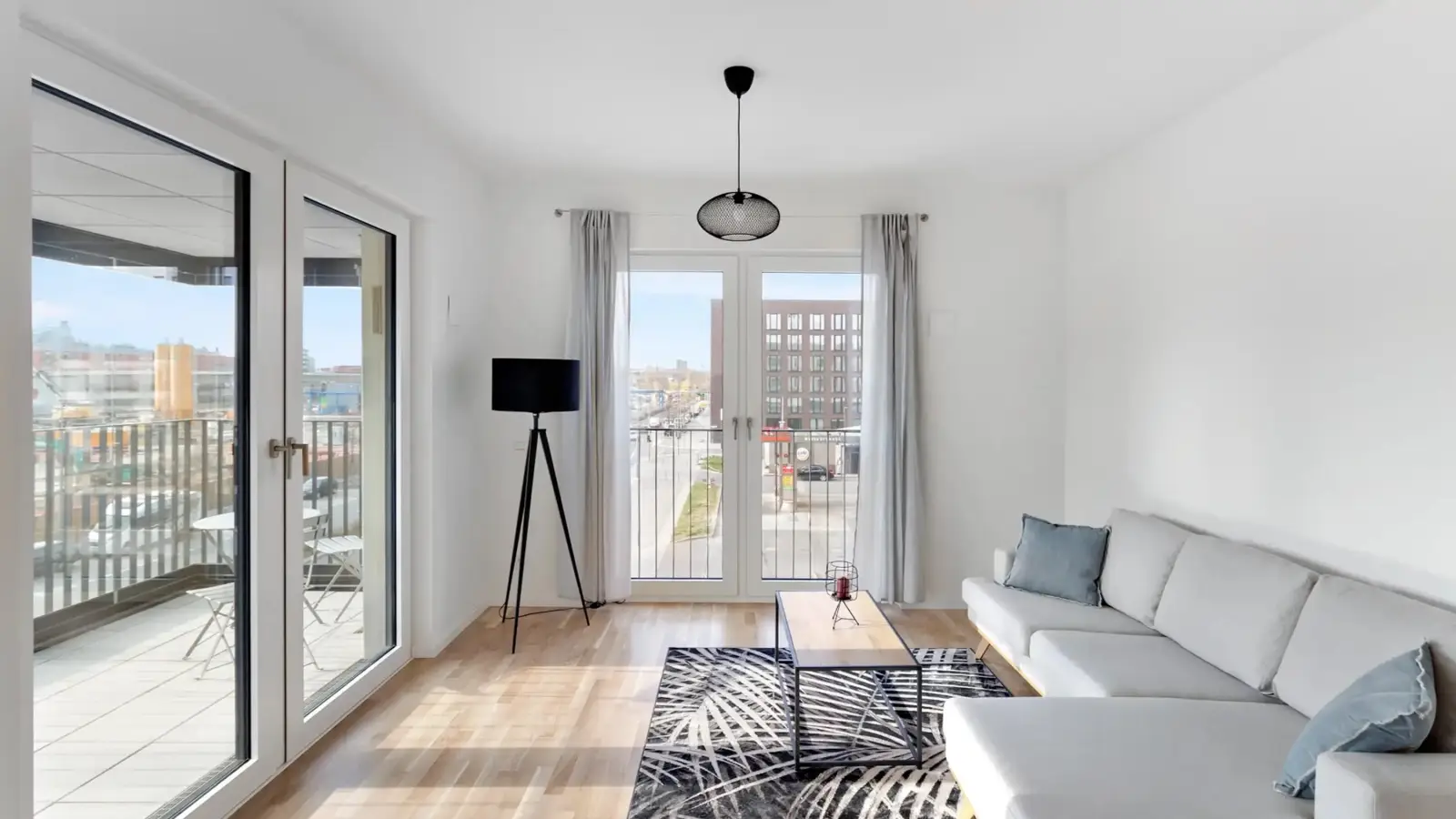 The beautifully designed and elegantly furnished apartments are part of the project: Wasserstadt Mitte Apartments.
