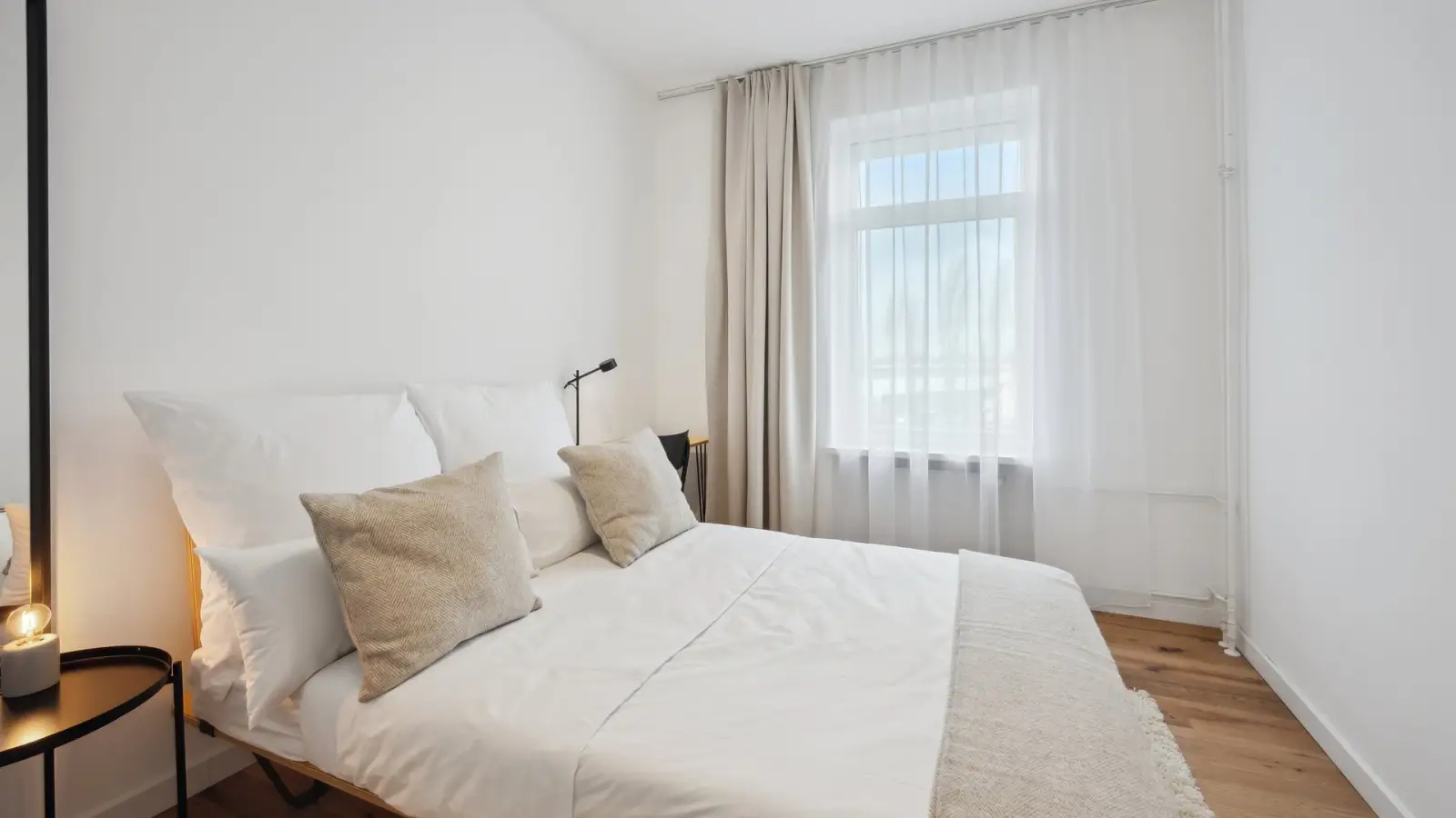 Our rooms come fully furnished with everything you need for a comfortable daily life. In the bedroom area, you will find a bed with a nightstand and lamp, as well as a large wardrobe. A premium mattress with a set of bedsheets, pillows, and duvets is also always included. To comfortably work or study from home, there is a table with a lamp and chair. You wont need anything additional to settle in, and can arrive just your luggage at hand.