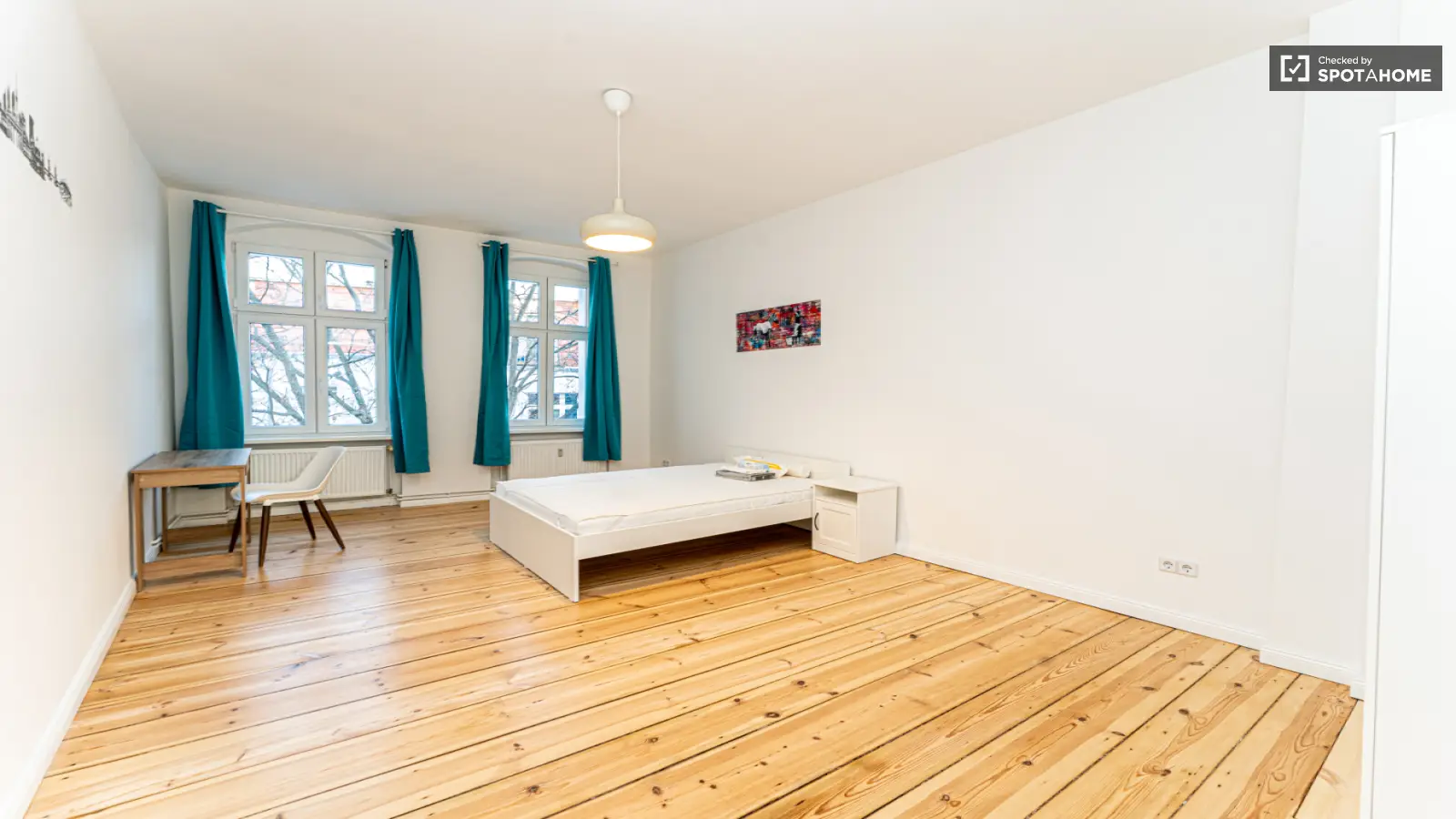 This beautiful room is located in a shared 2-bedroom apartment in Berlin. It is well-equipped, featuring a private washing machine, an oven, and a balcony. The apartment is entirely furnished and exterior, ensuring a comfortable stay. It comes with an equipped kitchen and includes all necessary bills (water, electricity, gas, and WiFi) for convenience. It is worth noting that the property was personally verified by Spotahome for your peace of mind. Tenants can enjoy a vibrant life here as the property is meant for both professionals and students, but couples, pets, and smoking are not allowed.