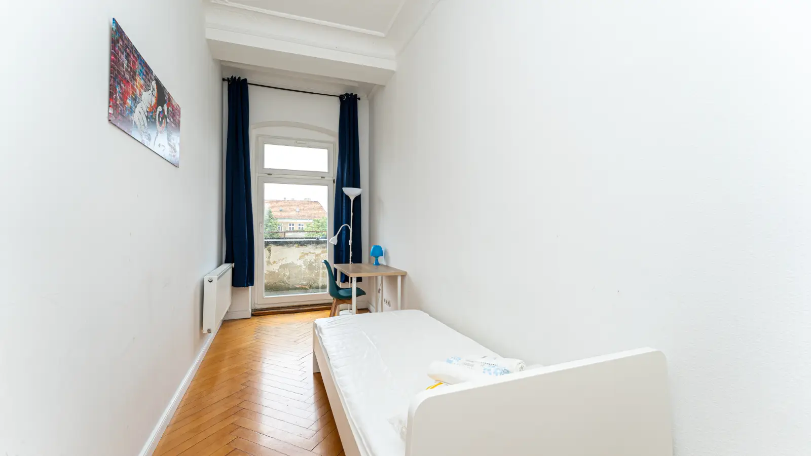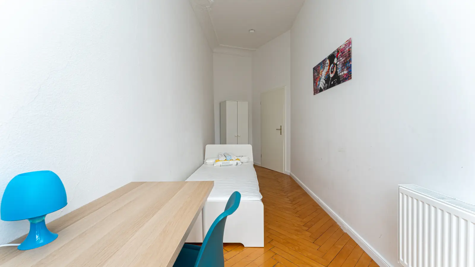 Are you looking for a place to stay in Berlin? This room in a shared 5-bedroom apartment might be ideal for you. The room is fully furnished and provides access to a equipped kitchen. Features such as a private washing machine offer convenience, ensuring comfort during your stay. The property welcomes professionals and students but doesn't allow couples, pets, or smoking. Additionally, all bills—including electricity, water, gas, and wifi—are included in the rent.