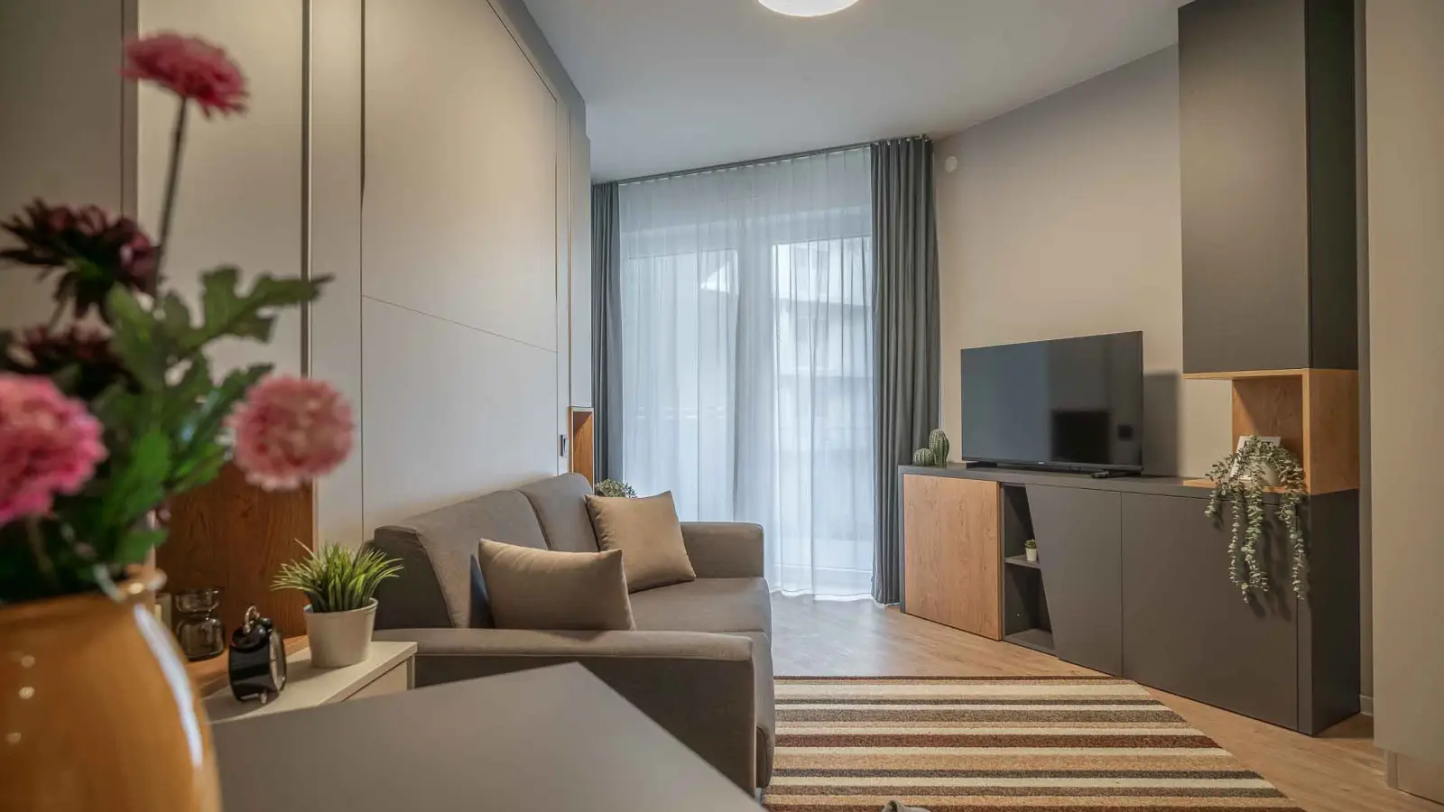 Experience elevated comfort in our M apartments, each complemented by its own private balcony. Designed for those who appreciate more space and flexibility, these apartments feature a separate bedroom that enhances comfort and privacy. The spacious living area and well-equipped kitchen create a perfect environment for work, relaxation, or entertaining, while the private balcony offers your own outdoor retreat — ideal for a morning coffee or an evening unwind with a view. Equipped with modern amenities such as a refreshing shower, flat-screen TV, and fast Wi-Fi, every detail is designed to make your stay as comfortable and effortless as possible.