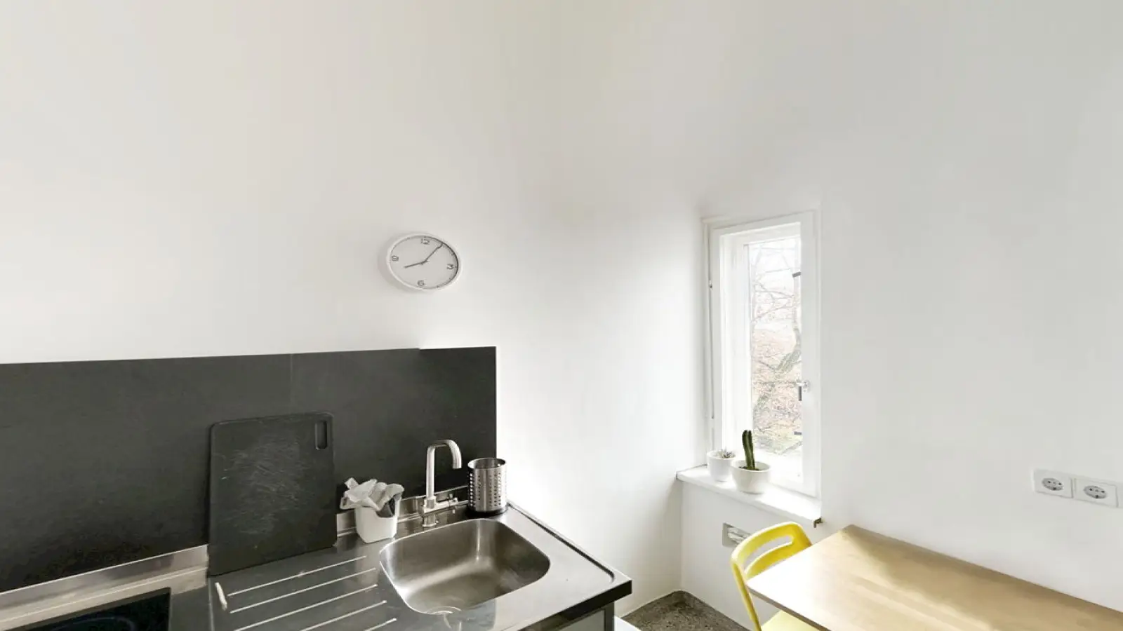 Discover this furnished studio for rent in Berlin. The property includes an equipped kitchen with an oven for meal preparation. Note that bills for electricity, water, and wifi are included in the rent. This property ensures central water heating.