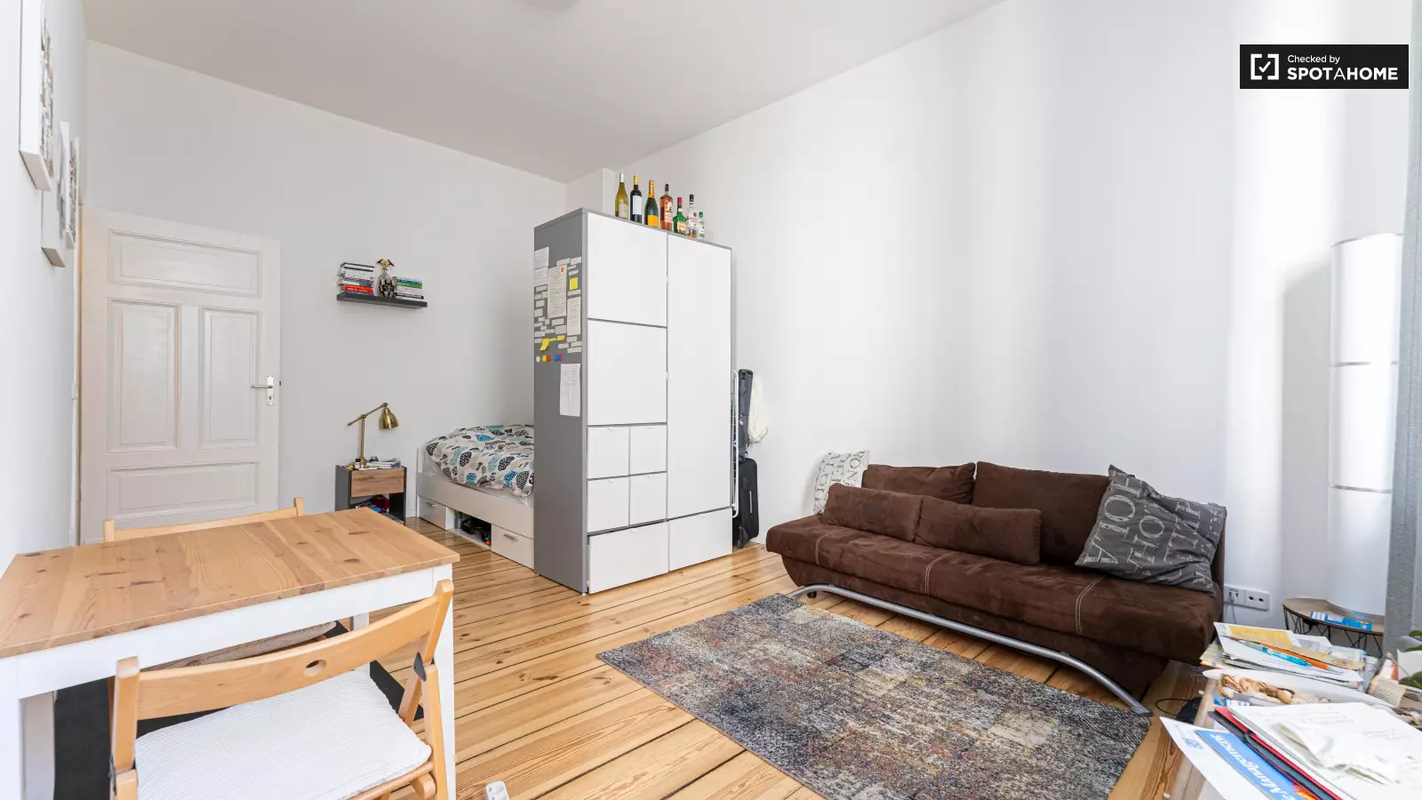 Furnished studio apartment for rent on Emdener Street. The property is on the 1st floor of a building without an elevator.