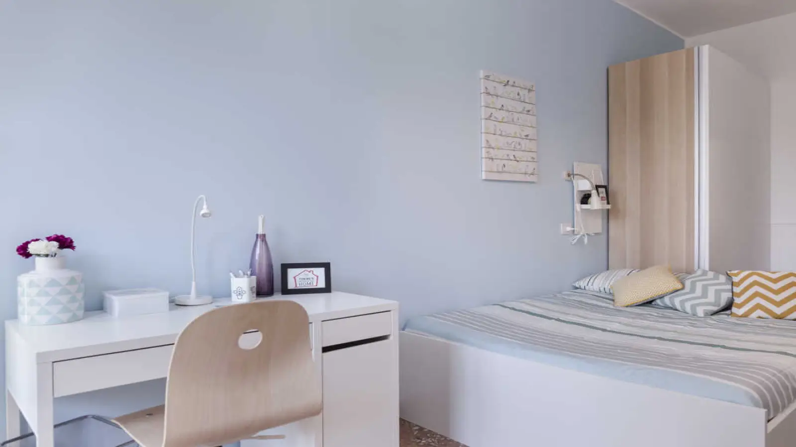 Looking for a cozy room in Bologna? This furnished double room in a shared 6-bedroom apartment includes a desk, chest of drawers, and access to a balcony, offering a great living space for individuals.