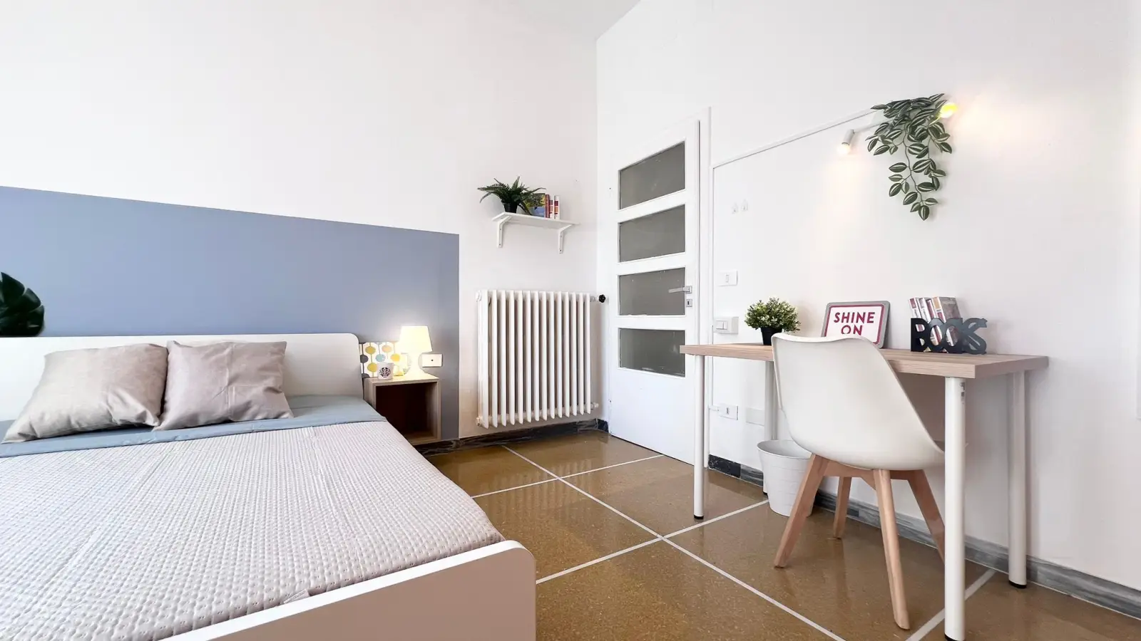 Zona Murri, posizione strategica e ambita, si affitta una bellissima suite Stanza Semplice ristrutturata appositamente per offrire comfort e comodità ai nostri studenti. La stanza è dotata di letto piazza e mezza, armadio 4 ante, scrivania, comodino, tendaggi, specchio, scarpiera, libreria. I colori delle pareti favoriscono il buon umore e aiutano nello studio.
