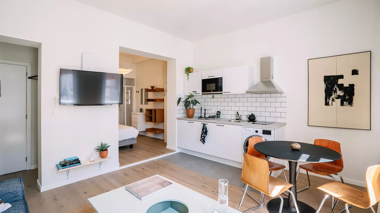 Furnished 1-bedroom apartment for rent on Rue Jourdan .