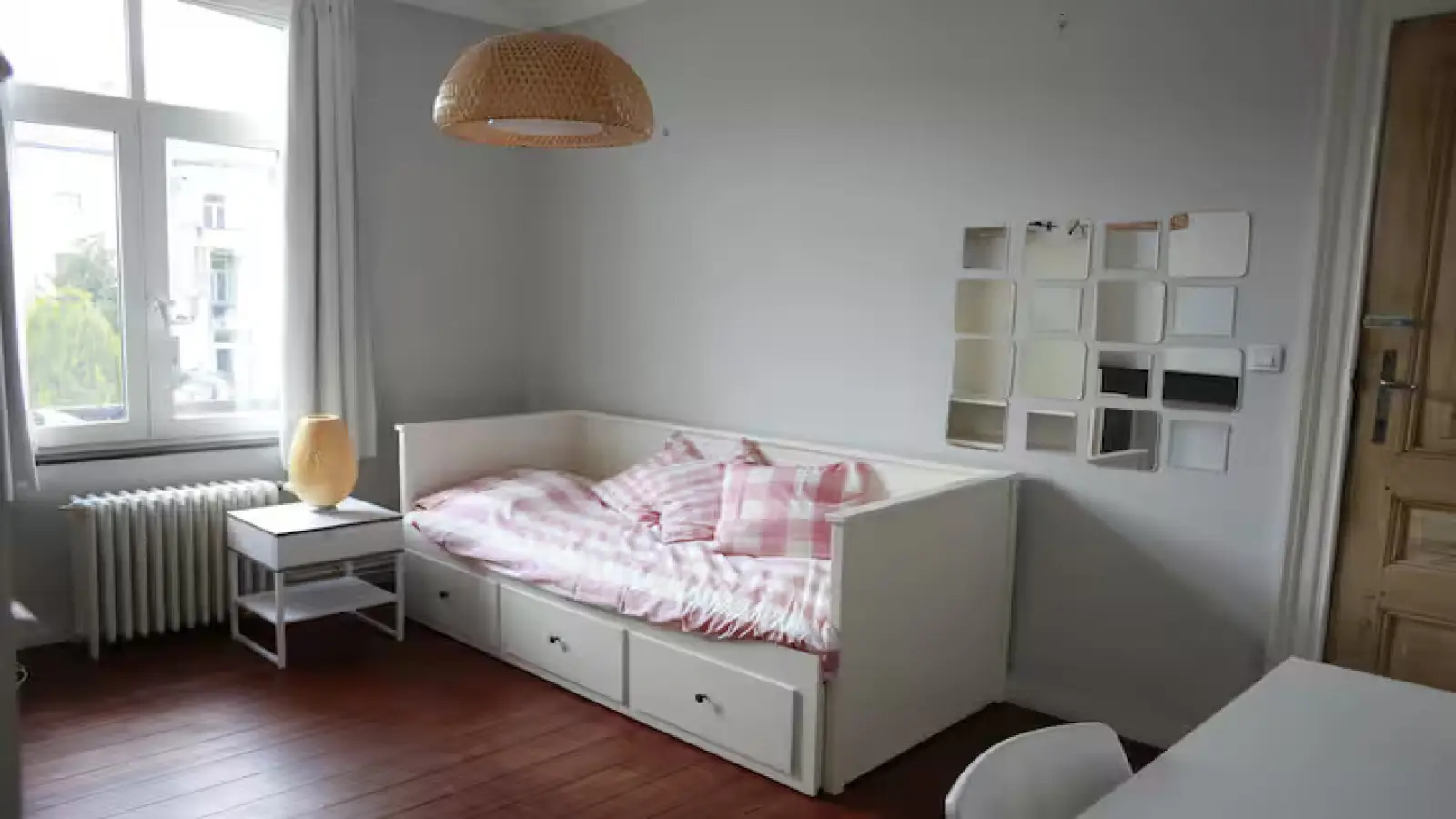 Located in the Dailly neighborhood of Brussels, this inviting shared apartment offers a comfortable double bed bedroom for rent. The room comes fully furnished with a desk for study or work purposes and features shelving for organizing your belongings. Couples are welcome to rent this room. While not personally verified by Spotahome, all landlords on Spotahome have undergone a comprehensive vetting process.