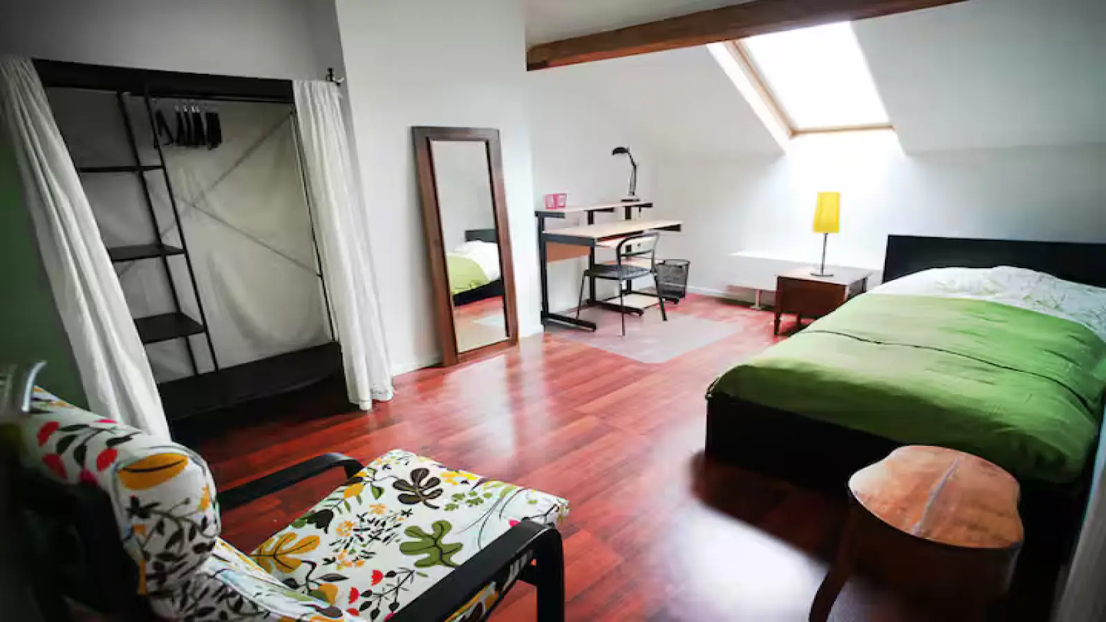 This single room in a shared 6-bedroom apartment located in Dailly, Brussels, offers simplicity and functionality. The room is furnished with a comfortable bed, a desk for study or work purposes, and a built-in wardrobe for storage. It is equipped with an independent key for added security. While the room does not have a private bathroom, it provides a cozy atmosphere for tenants.