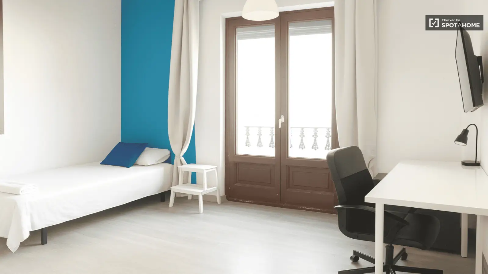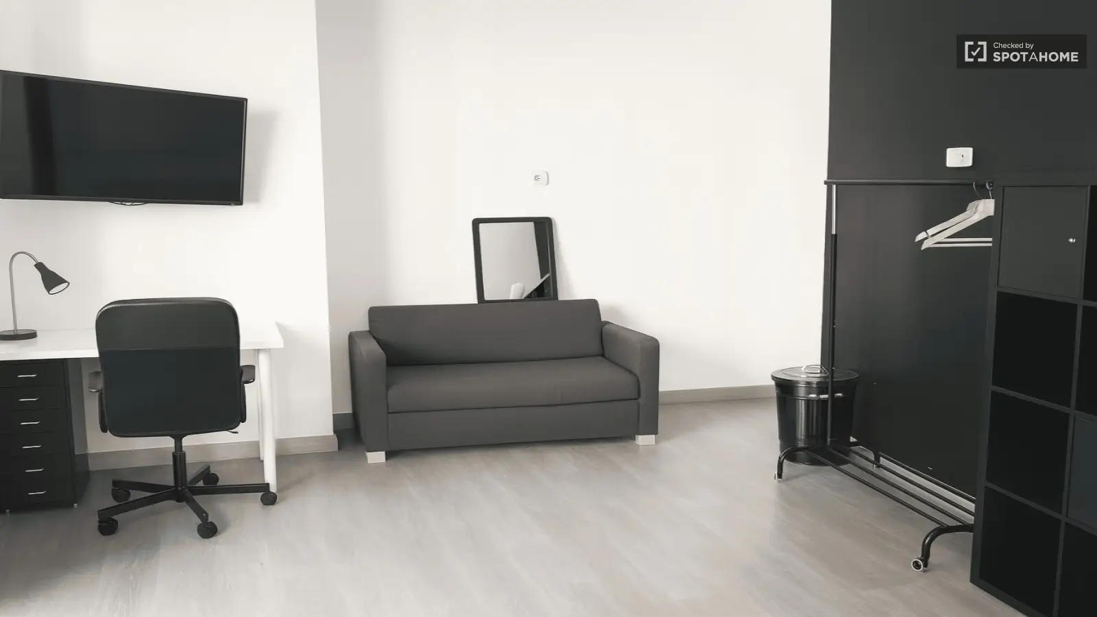 Dieses WG-Zimmer bietet ein Zimmer zur Miete, alle Nebenkosten sind inklusive. Die Wohnung ist möbliert und mit Annehmlichkeiten wie einer eigenen Waschmaschine, elektrischem Warmwasser und einer elektrischen Heizung ausgestattet. Sie bietet einen schönen Ausblick, einen Balkon oder eine Terrasse und ist mit einem Aufzug erreichbar. Rauchen ist erlaubt, und Übernachtungsgäste sind willkommen. Paare und Studenten sind herzlich eingeladen, sich zu bewerben. Spotahome hat die Unterkunft persönlich geprüft und sich von ihrer Authentizität und Qualität überzeugt.