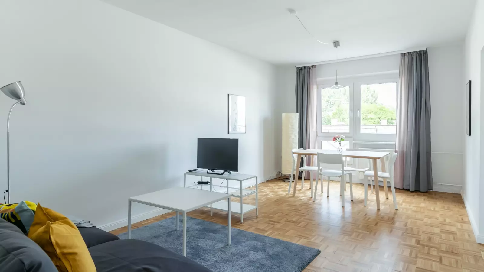 Suchen Sie eine schöne Wohnung in Berlin? Diese möblierte 2-Zimmer-Wohnung bietet ein komfortables Zuhause mit ausgestatteter Küche, eigener Waschmaschine und Balkon. Paare, Berufstätige, Studenten und sogar Erasmus-Besucher finden hier die passende Unterkunft. Haustiere und Rauchen sind erlaubt, was ein einladendes und flexibles Wohnen ermöglicht. Die Miete beinhaltet Strom, Wasser, Gas, Heizung, WLAN, Gemeindesteuer, Reinigungsservice und Bettwäsche.