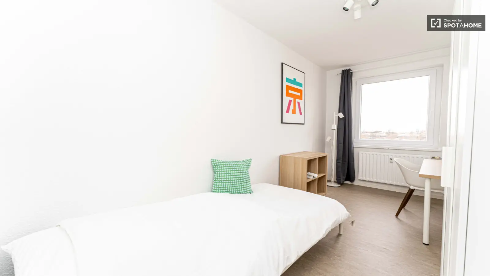 Entdecken Sie dieses möblierte Zimmer in einer 4-Zimmer-WG in Berlin. Die Wohnung befindet sich im Außenbereich und verfügt über eine voll ausgestattete Küche sowie eine eigene Waschmaschine. Zusätzlich bietet sie einen Balkon oder eine Terrasse und eignet sich für Berufstätige und Studierende. Paare sind jedoch nicht zugelassen. Strom, Wasser, Gas und WLAN sind inklusive, Bettwäsche wird gestellt. Spotahome hat diese Unterkunft persönlich geprüft, um ihre Qualität sicherzustellen. Vermieter werden sorgfältig ausgewählt.