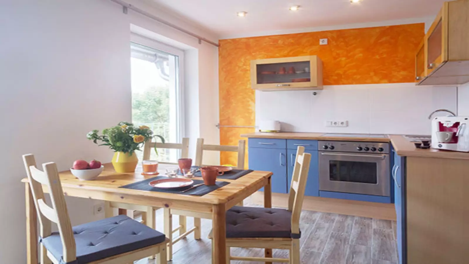 In der 3. Etage - 25 qm für bis zu 2 Personen - kostenloses WLAN - Wohnzimmer mit 2 Betten (je 80 cm, die zusammen oder getrennt stehen können), Schrank, Bügeleisen, Esstisch, Schreibtisch, Musikanlage, Smart-TV - Küchenzeile mit Kühlschrank, Toaster, Wasserkocher, Tee, Kaffeemaschine, Kaffeepads, Herd mit Cerankochfeld und Backofen - Duschbad mit Handtüchern, Föhn, Seife und Shampoo.