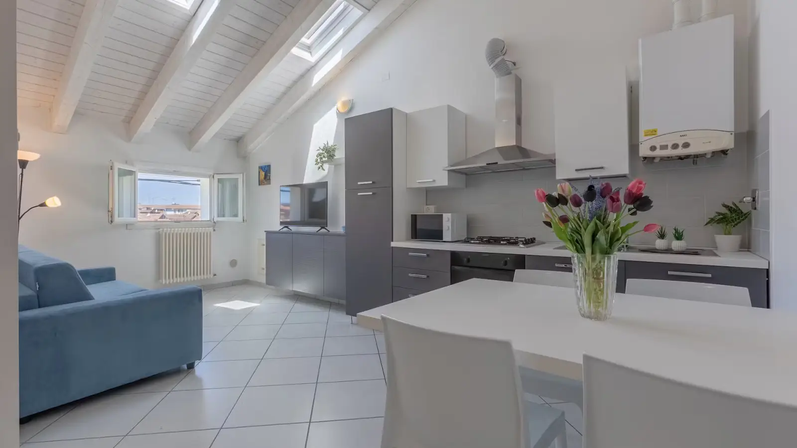 Suchen Sie ein gemütliches und voll möbliertes Zuhause? Diese 2-Zimmer-Wohnung in Comacchio bietet moderne Annehmlichkeiten wie Zentralheizung, eine voll ausgestattete Küche mit Backofen, eine eigene Waschmaschine und einen Fernseher für Ihre Unterhaltung. Die Wohnung wird professionell verwaltet und garantiert einen hohen Wohnstandard. Sie ist ideal für Berufstätige, Studenten, Paare und Erasmus-Teilnehmer. Die Unterkunft ist rauch- und haustierfrei, alle wichtigen Rechnungen – Strom, Wasser, Gas und WLAN – sind inklusive. Die Immobilie wurde nicht persönlich von einem Spotahome-Homechecker überprüft, aber alle Vermieter haben unser sorgfältiges Überprüfungsverfahren durchlaufen.