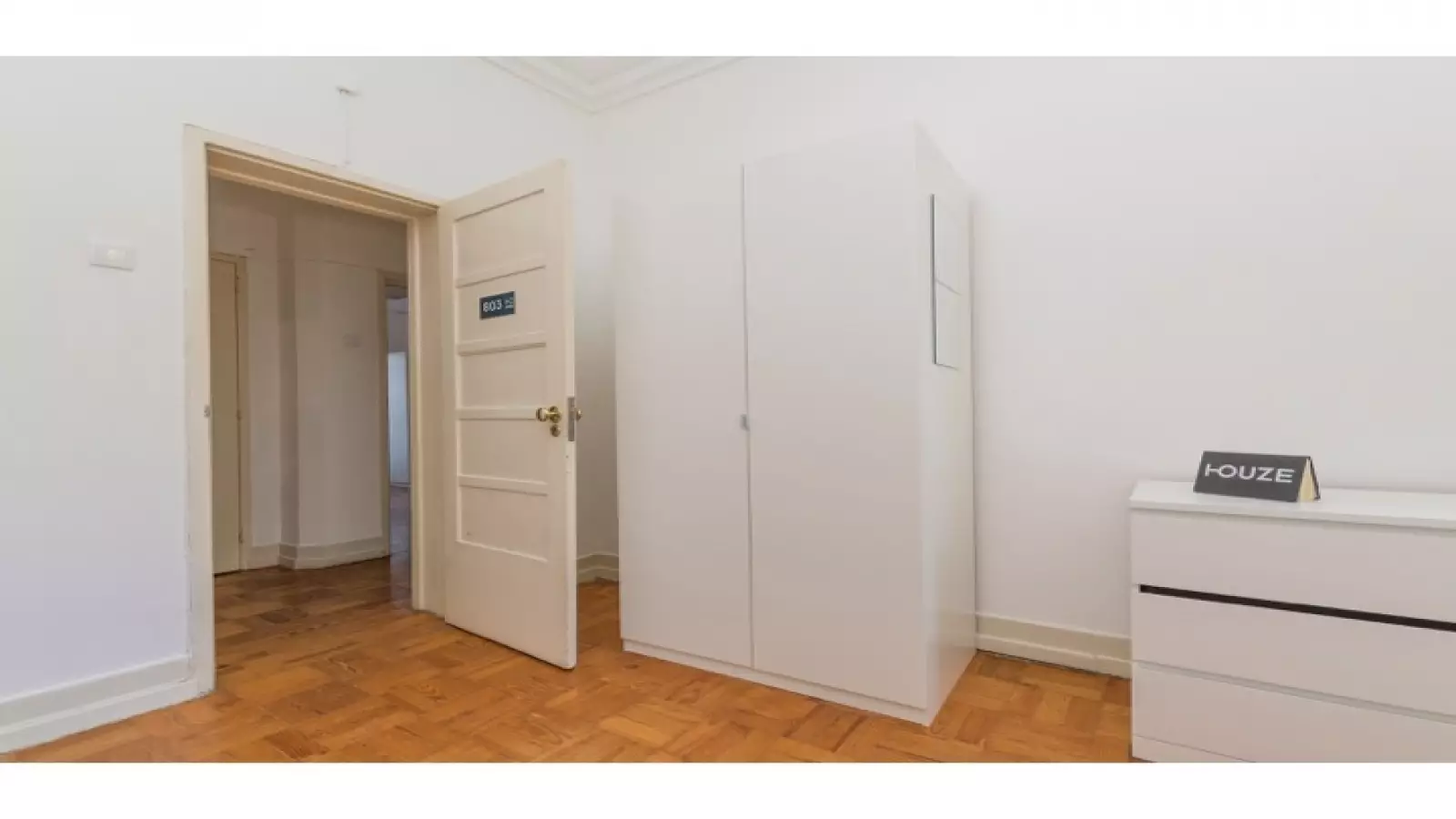 Zimmer zu vermieten in einem möblierten Apartment mit 7 Schlafzimmern in R. Joaquim António De Aguiar. Die Unterkunft befindet sich im Erdgeschoss eines Gebäudes ohne Aufzug. Das Anwesen umfasst Fernseher und Geschirrspüler.