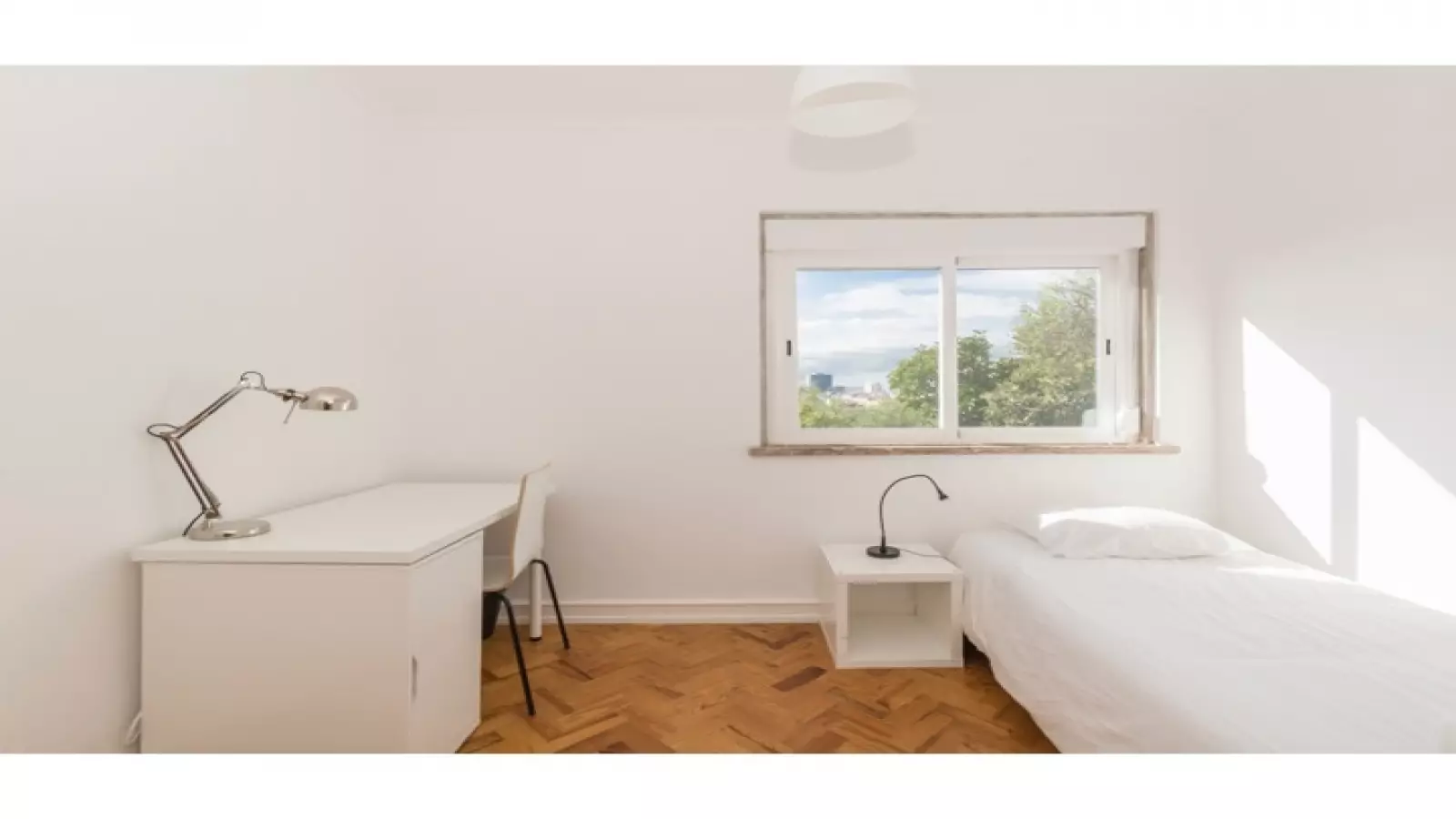 Zimmer zu vermieten in einer möblierten 4-Zimmer-Wohnung in R. Barão De Sabrosa. Die Unterkunft befindet sich im 2. Stock. Die Unterkunft bietet Stadtblick, Fernseher und Geschirrspüler.