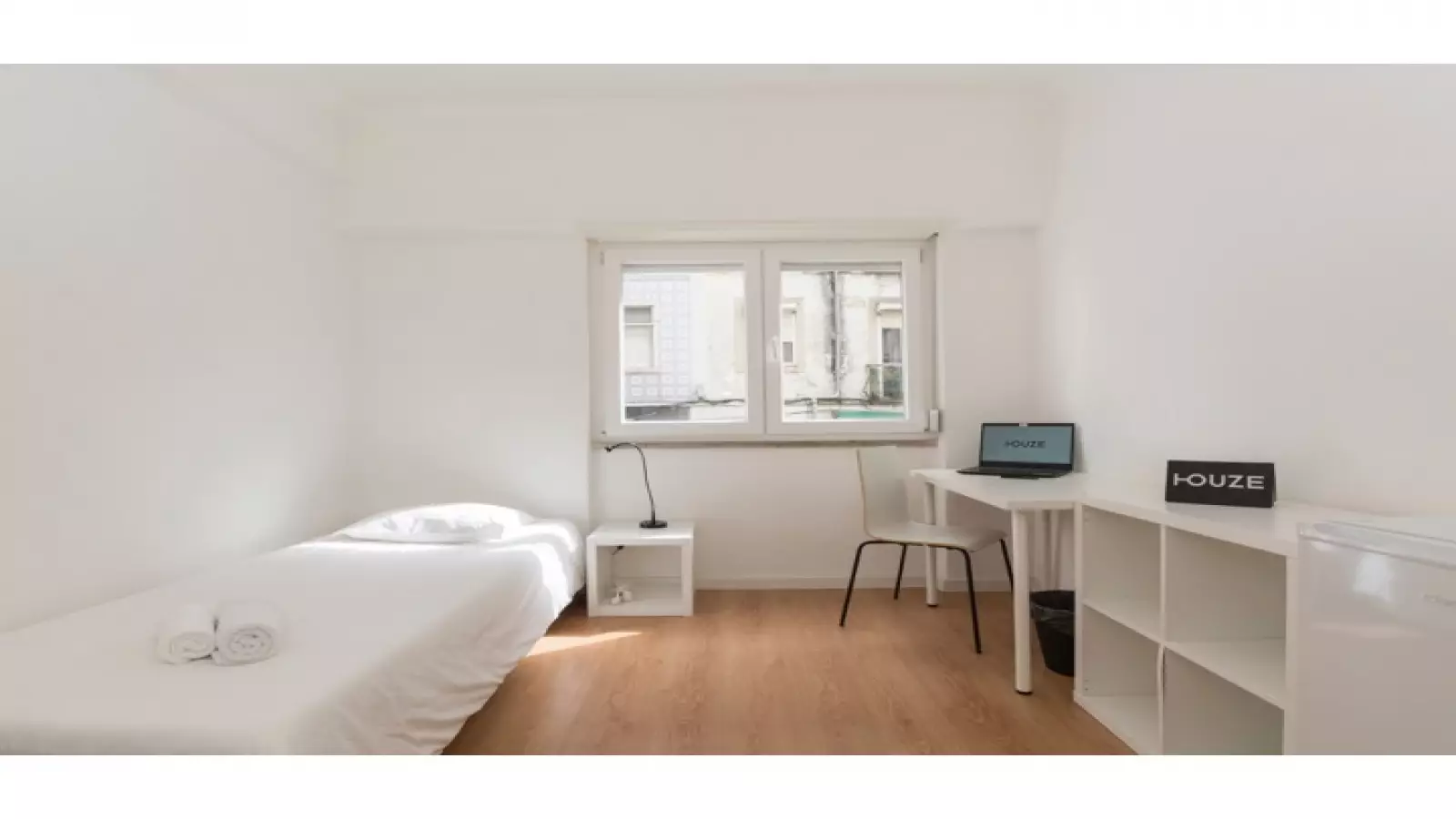 Zimmer zu vermieten in einem möblierten Apartment mit 15 Schlafzimmern in R. Morais Soares. Die Unterkunft befindet sich im 1. Stock. Die Unterkunft verfügt über eine Terrasse, einen Fernseher und eine Waschmaschine.
