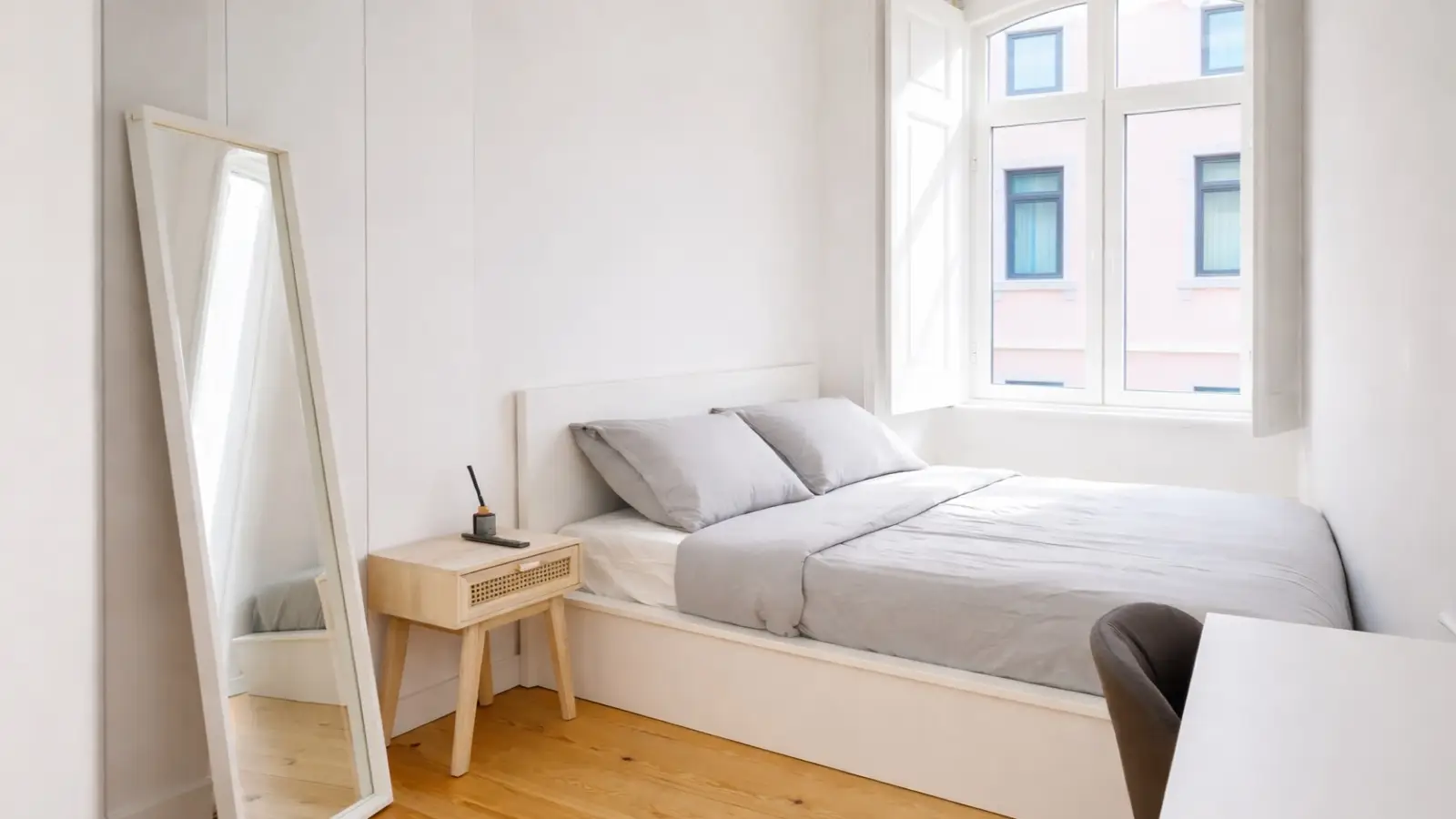 Zimmer zu vermieten in einer möblierten 6-Zimmer-Wohnung in der R. Morais Soares. Das Anwesen verfügt über einen Balkon und eine Klimaanlage.