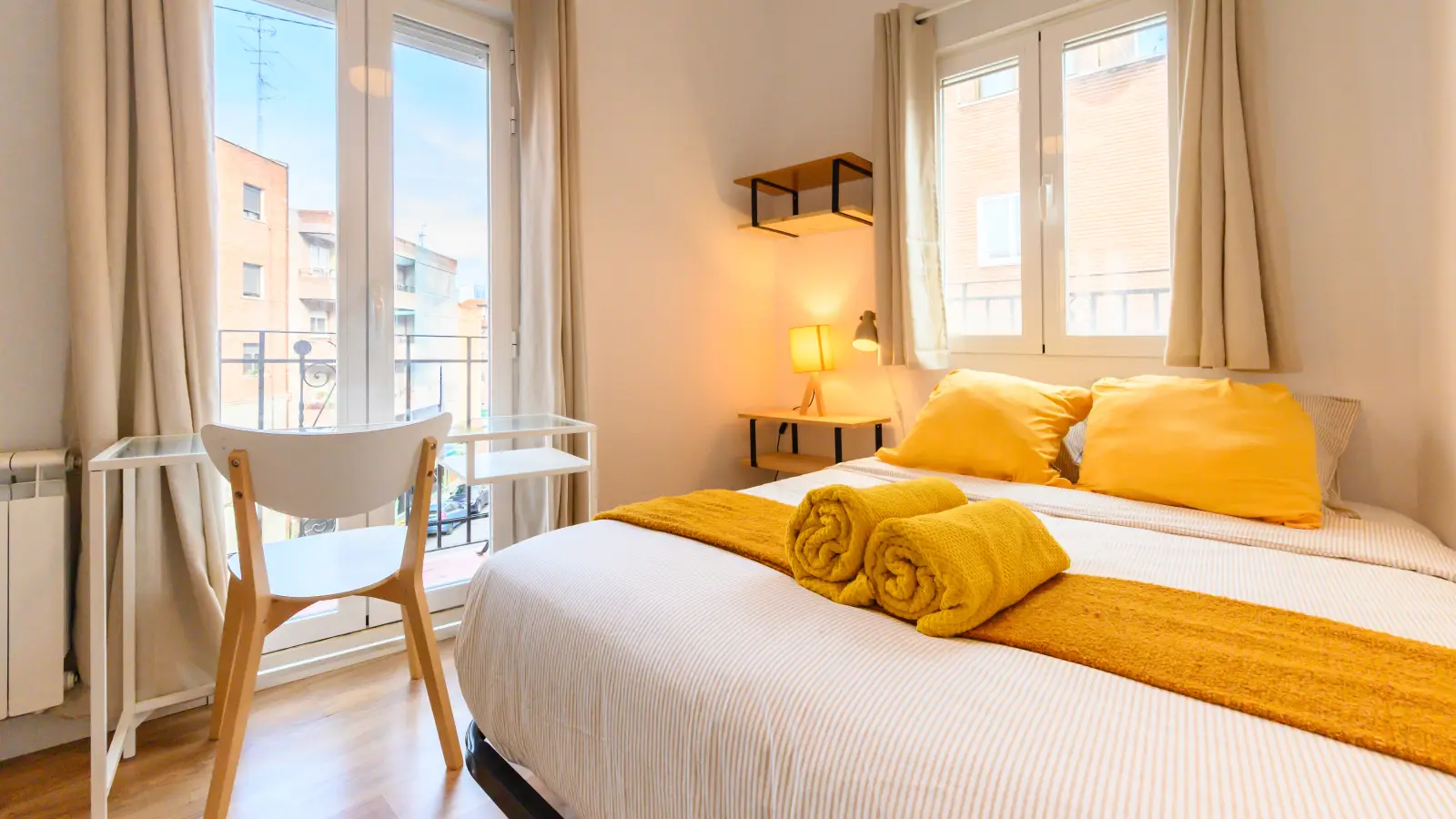 Diese möblierte 3-Zimmer-Wohnung ist ideal für Berufstätige und Studierende in Madrid. Neben drei komfortablen Schlafzimmern bietet die Wohnung eine gut ausgestattete Küche, eine elektrische Heizung, einen Backofen und eine Waschmaschine zur gemeinsamen Nutzung. Ein Aufzug sorgt für bequemen Zugang. WLAN steht den Mietern zur Verfügung. Bitte beachten Sie, dass Rauchen und Haustiere in der Wohnung nicht gestattet sind.