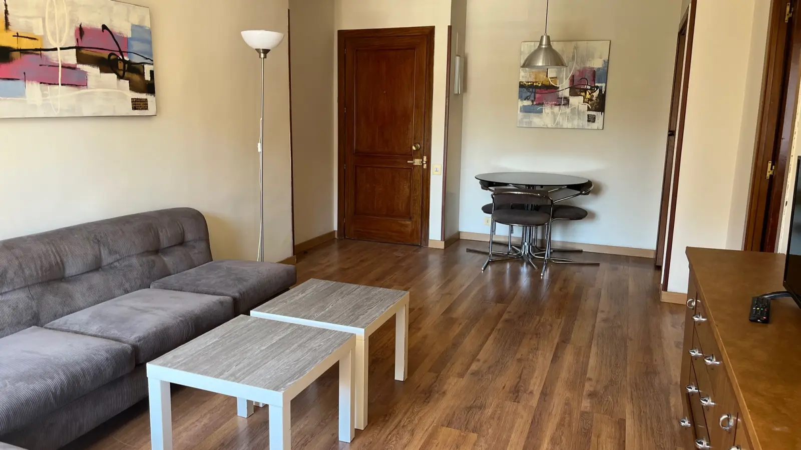 Dieses voll möblierte 1-Zimmer-Apartment in Nueva España, Madrid, bietet Ihnen ein komfortables Wohnerlebnis mit eigenem Balkon und Aufzug. Zur Ausstattung gehören eine Klimaanlage zur individuellen Temperaturregelung und eine eigene Waschmaschine. Bitte beachten Sie, dass weder Geschirrspüler noch Backofen vorhanden sind und keine Möglichkeit zum Wäschetrocknen besteht.