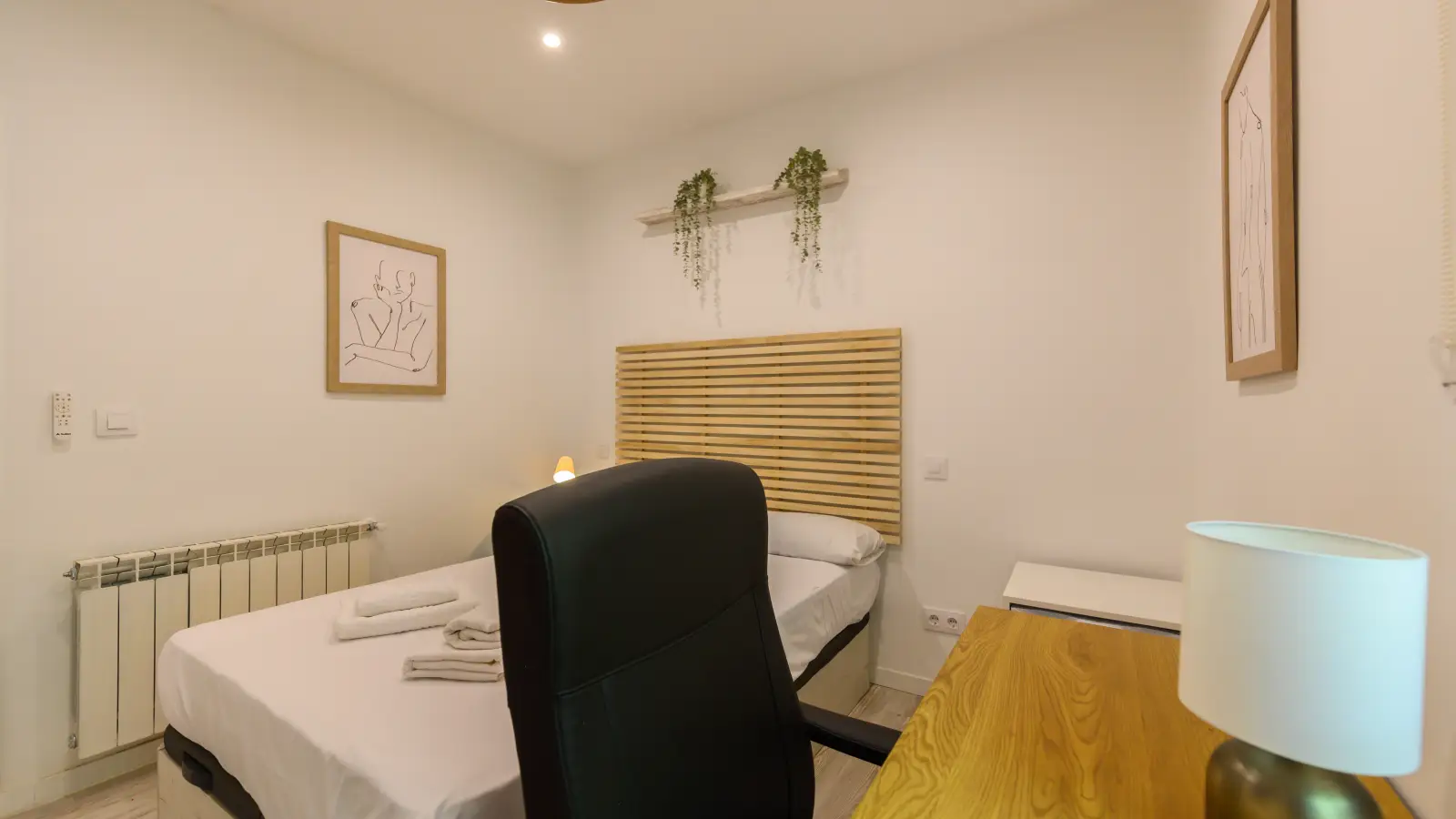 Diese 4-Zimmer-Wohnung zur Mitbenutzung befindet sich in Simancas, einem Madrider Stadtteil, der sich ideal für komfortables Wohnen eignet. Die Wohnung ist möbliert und verfügt über Erdgasheizung und Erdgas-Warmwasserbereitung. Die Küche ist modern ausgestattet, unter anderem mit Geschirrspüler und Backofen. Die Wohnung wurde von Spotahome geprüft, was die Einhaltung der Qualitätsstandards bestätigt. Bitte beachten Sie, dass Rauchen und Haustiere nicht gestattet sind.