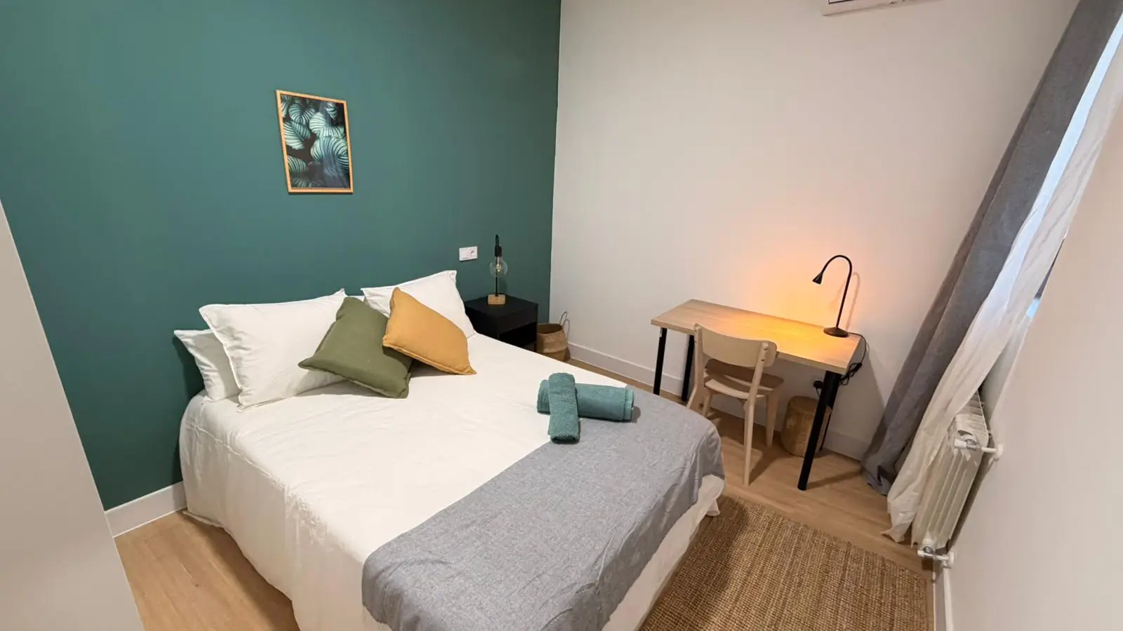 ROOM in the center of Madrid. This room with AIR CONDITIONING is rented in a shared apartment, fully RENOVATED (as new) and EQUIPPED. It is FURNISHED wirth AIR CONTDITIONING with a double bed (which has a storage space under the mattress), a wardrobe, a mirror and a desk with chair. Pillows, sheets and towels are also provided. In the price, it is INCLUDED: - Internet (Fibre) - Expenses (Gas, electricity and water) - Weekly cleaning of common areas COUPLES AND PETS ARE NOT ALLOWED For any additional information, do not hesitate to contact us.