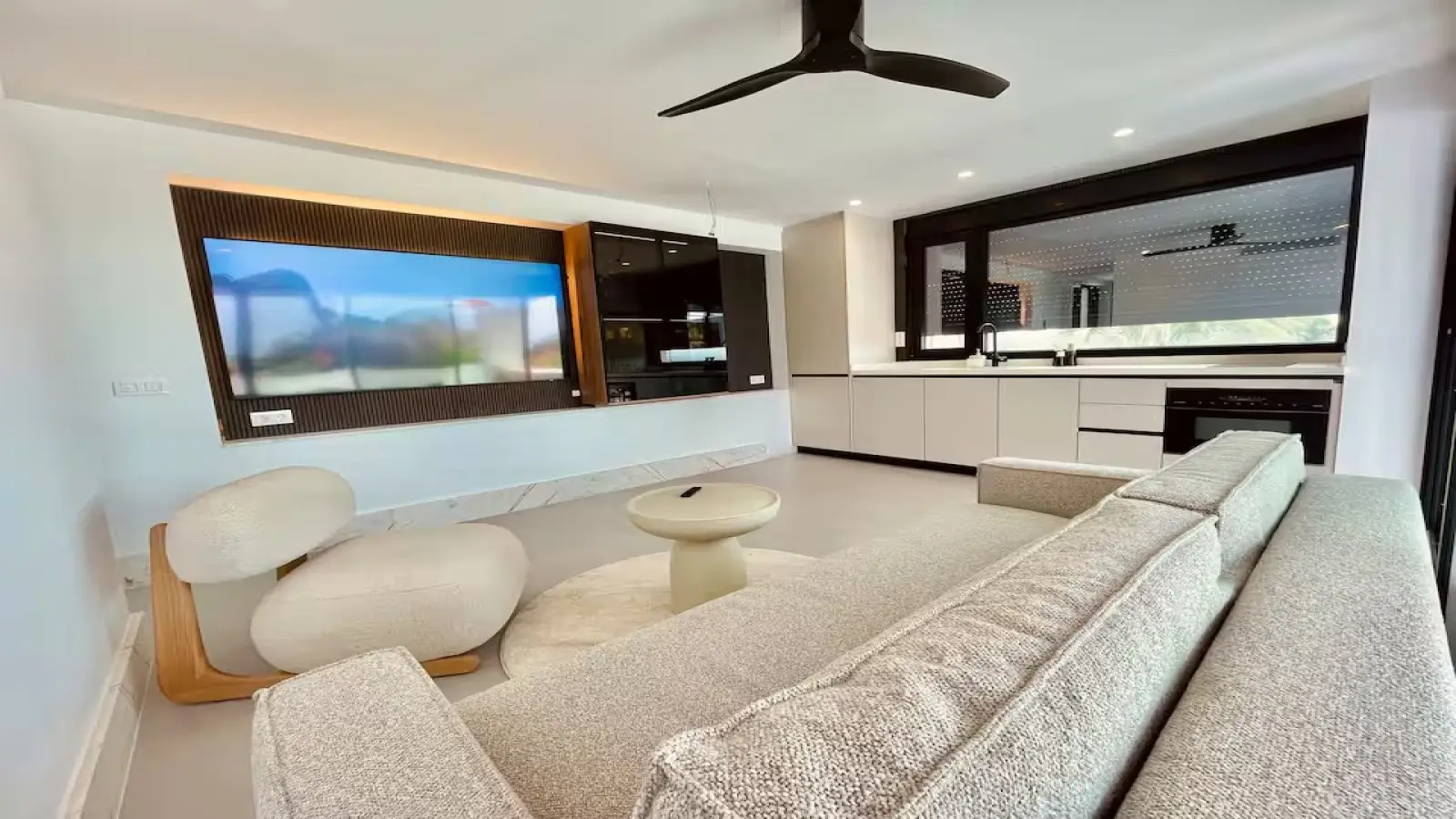 **Villa renovada, dividida en tres apartamentos** que comparten piscina y gimnasio. En uno de ellos reside de forma ocasional el propietario junto con su pareja, persona de entre 40 y 50 años, con un estilo de vida tranquilo y saludable. El ambiente general de la villa se caracteriza por la **buena convivencia, el respeto a los vecinos y el cumplimiento de las normas de comunidad**, lo que garantiza un entorno agradable y armónico para todos los residentes.