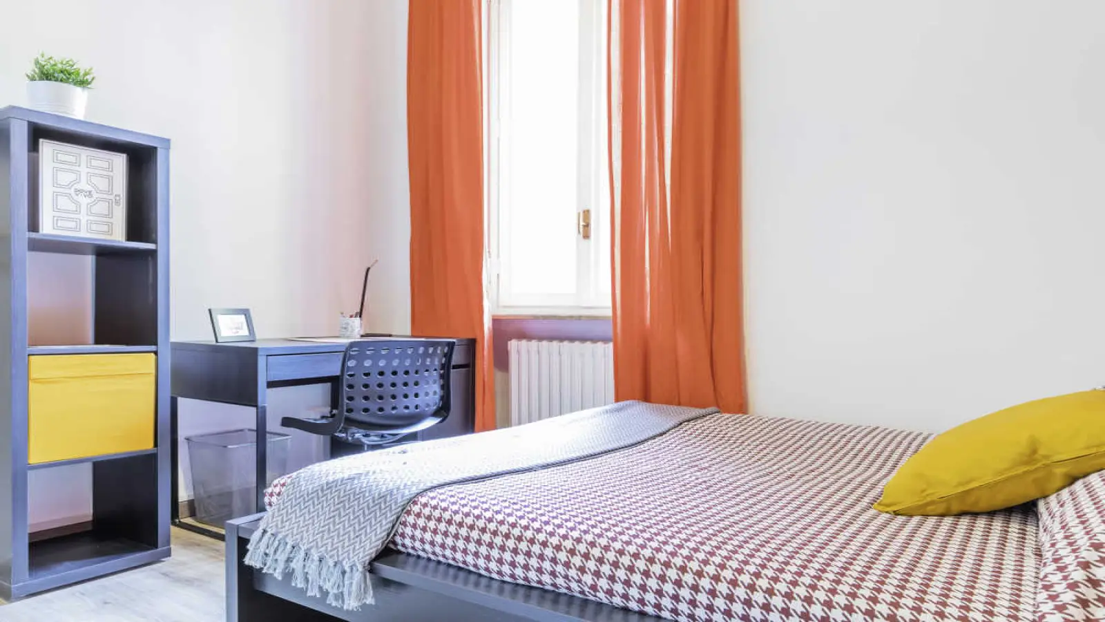 Einzelzimmer in einer Wohngemeinschaft, bestehend aus 5 Schlafzimmern und 2 Bädern. Von ca. 12 qm mit eineinhalb Betten und einem Arbeitsplatz. Mit WLAN, Geschirrspüler, Waschmaschine. Energieklasse: E, IPE 46,97 kWh/m² Jahr.