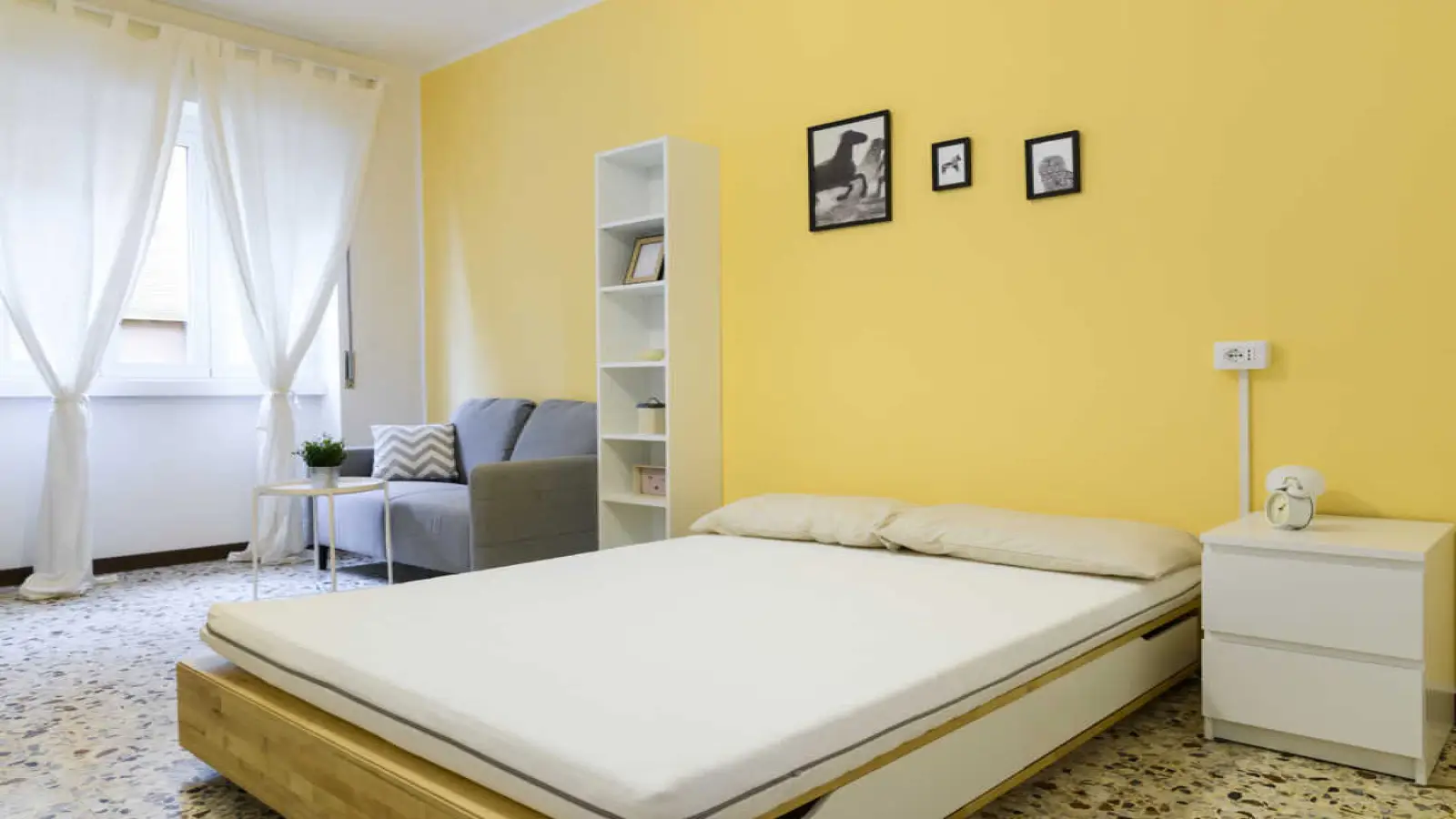 Ca. 22 m² groß, mit einem Doppelbett und einem Schreibtisch. WLAN, Concierge-Service, Geschirrspüler und Waschmaschine sind vorhanden.
