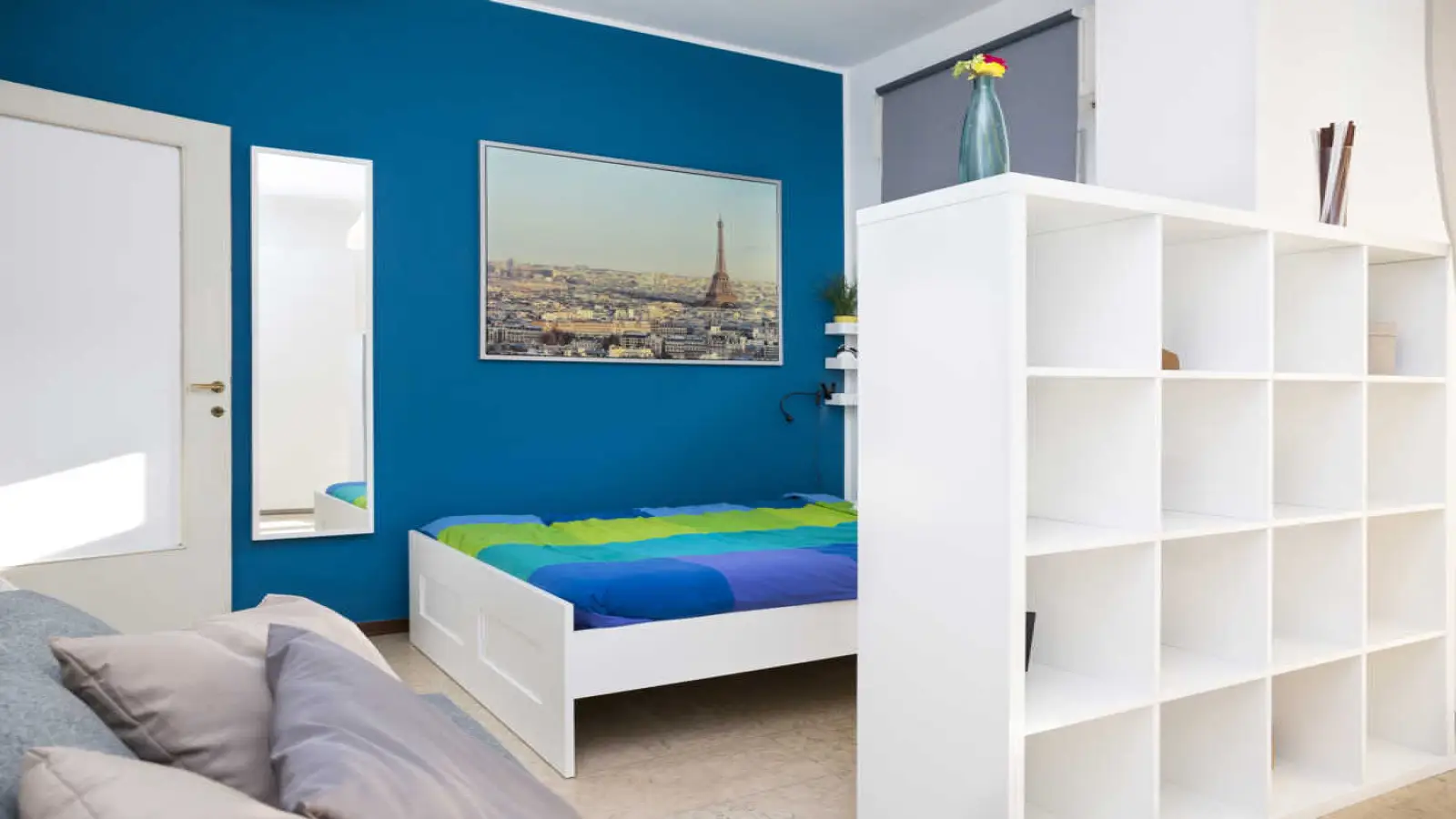 Ca. 19 m² groß mit einem anderthalb Betten und einem Arbeitsplatz. Mit WLAN, Geschirrspüler, Waschmaschine.