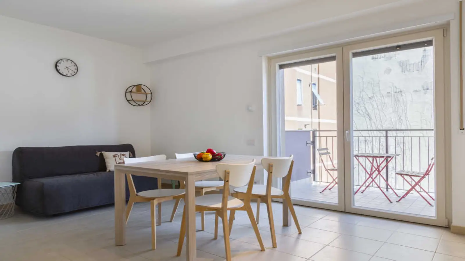 33 m² große Wohnung bestehend aus einem Wohnzimmer mit eigener Kochnische, einem eigenen Badezimmer und einem Schlafzimmer mit einem anderthalb Betten, einem Arbeitsplatz, Fernseher, Spülmaschine und Waschmaschine. Eventuell für ein Paar verfügbar. Energieklasse: A, IPE 49,54 Kwh/m² Jahr.