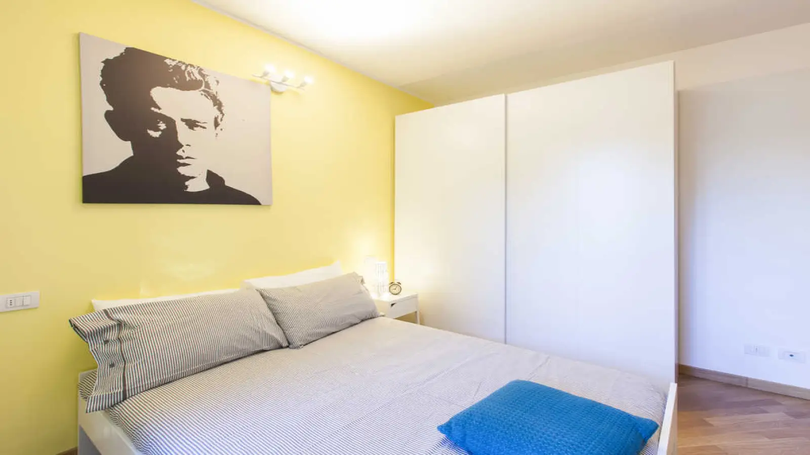 Ca. 15 m² groß, mit einem anderthalb Betten und einem Arbeitsplatz. Mit WLAN, Klimaanlage, Geschirrspüler, Waschmaschine.