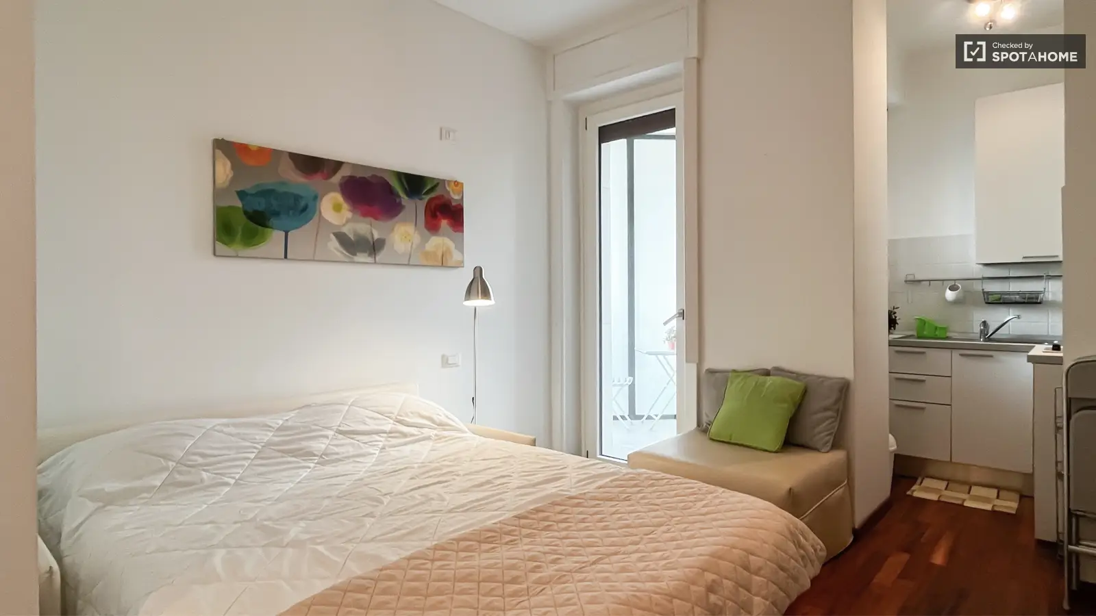 Suchen Sie ein gemütliches und komplett möbliertes Studio zur Miete in Porta Romana, Mailand? Dieses Studio bietet Möbel, eine voll ausgestattete Küche, einen Balkon und Blick auf den Innenhof. Es wurde von Spotahome auf Qualität und Echtheit geprüft. Ideal für Berufstätige, Studierende oder Paare – diese Unterkunft bietet ein komfortables Zuhause in der Nähe der besten Annehmlichkeiten und Sehenswürdigkeiten Mailands.